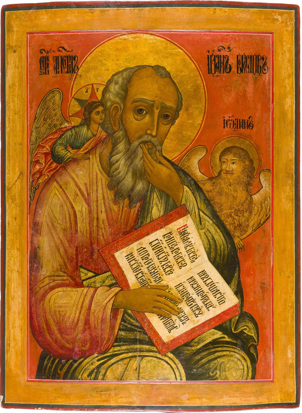 GROSSFORMATIGE IKONE MIT JOHANNES, THEOLOGE IM SCHWEIGEN