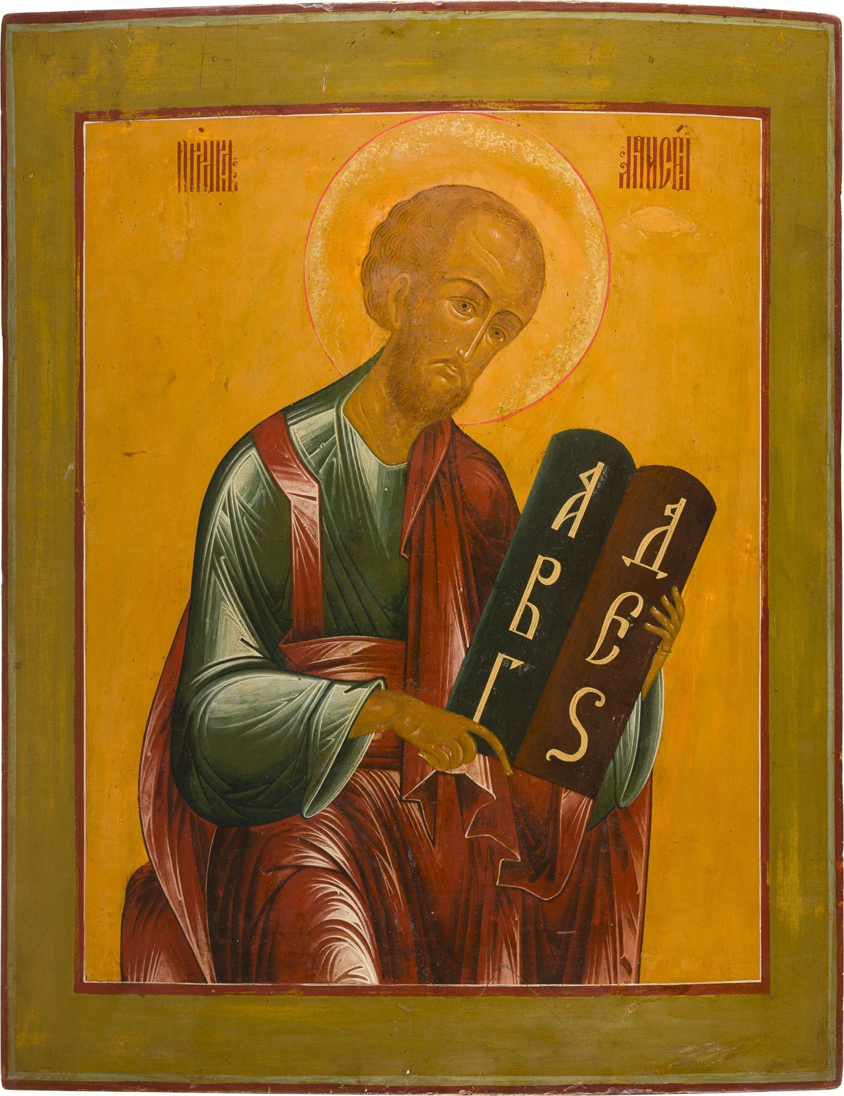GROSSFORMATIGE IKONE MIT MOSES AUS EINER KIRCHEN-IKONOSTASE