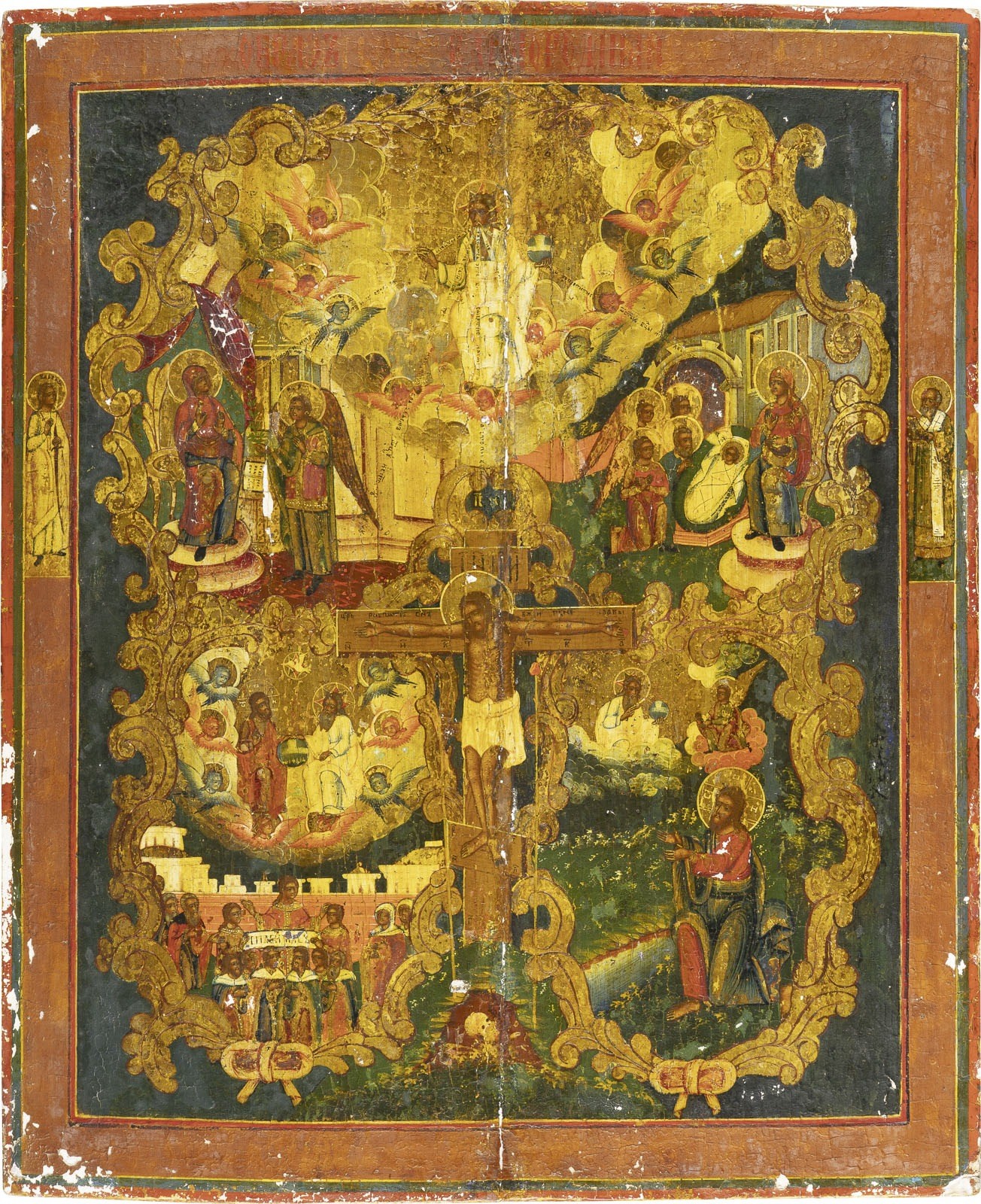 GROSSFORMATIGE IKONE MIT SZENEN AUS DEM LEBEN CHRISTI UND DER KREUZIGUNG