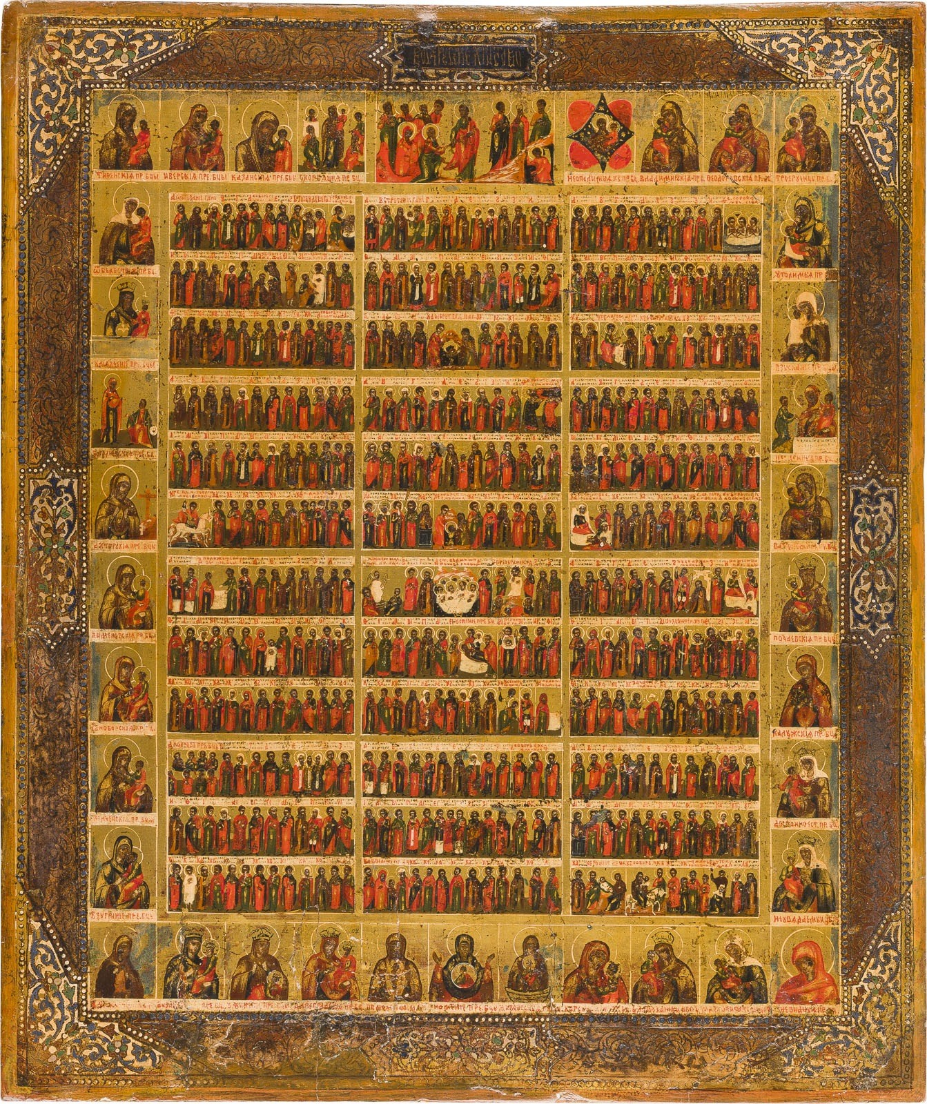 GROSSFORMATIGE JAHRESIKONE MIT DER HÖLLENFAHRT CHRISTI UND 25 GNADENBILDERN DER GOTTESMUTTER