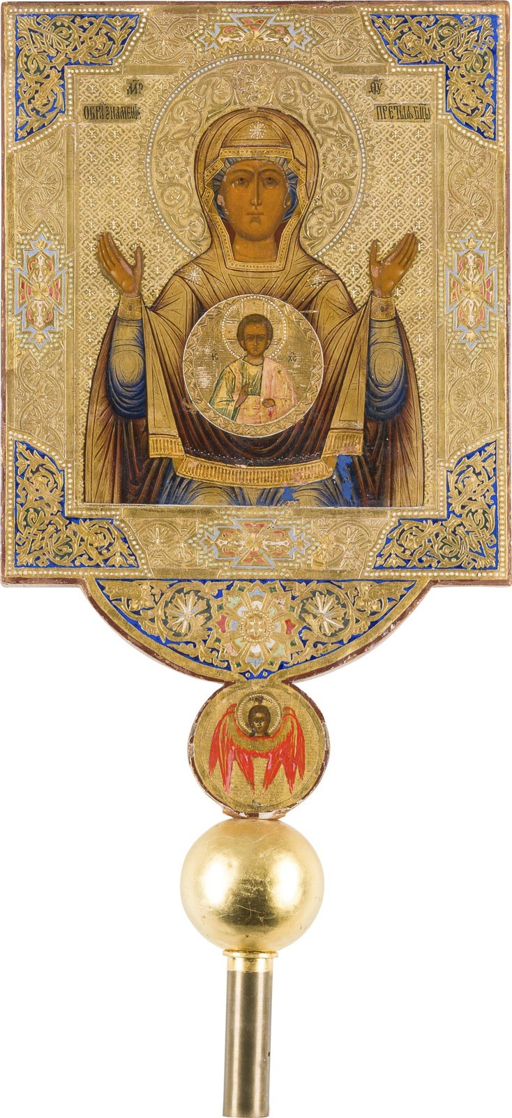 GROSSFORMATIGE PROZESSIONSIKONE MIT DER GOTTESMUTTER DES ZEICHENS UND DEM HEILIGEN NIKOLAUS VON MYRA
