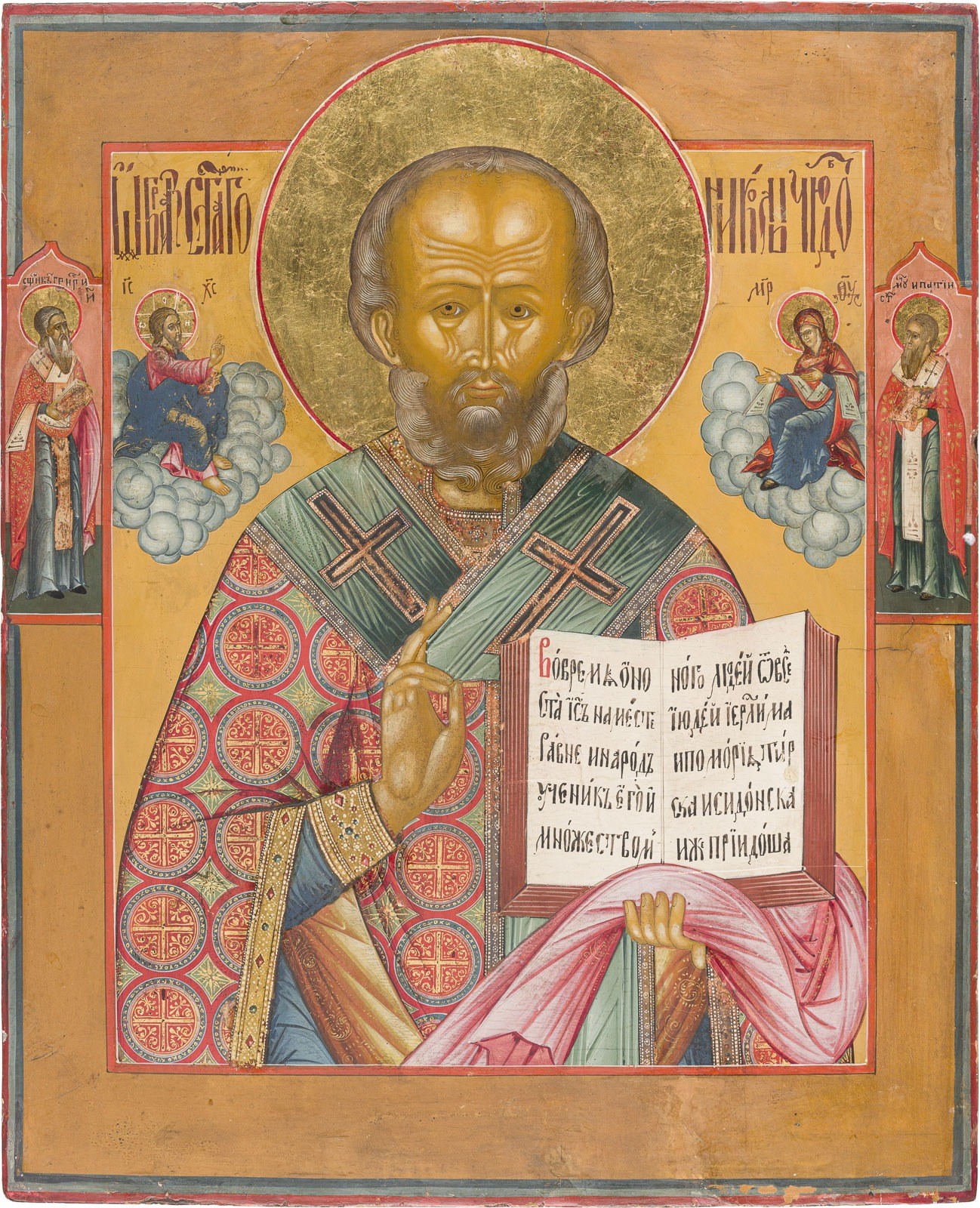 GROSSFORMATIGE UND FEINE IKONE MIT DEM HEILIGEN NIKOLAUS VON MYRA