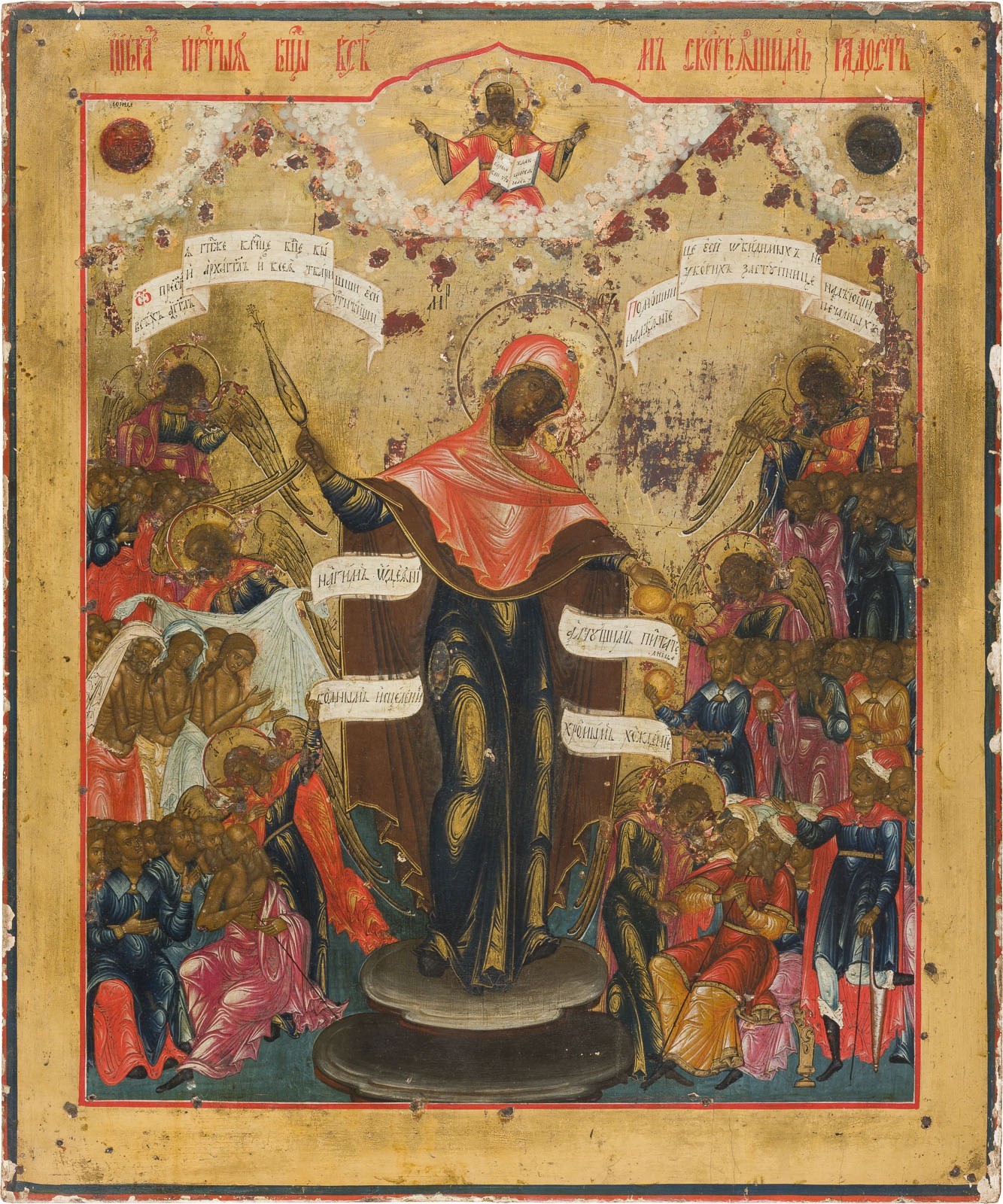 GROSSFORMATIGE UND FEINE IKONE MIT DER GOTTESMUTTER 'FREUDE ALLER LEIDENDEN'