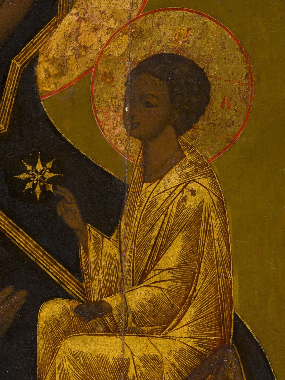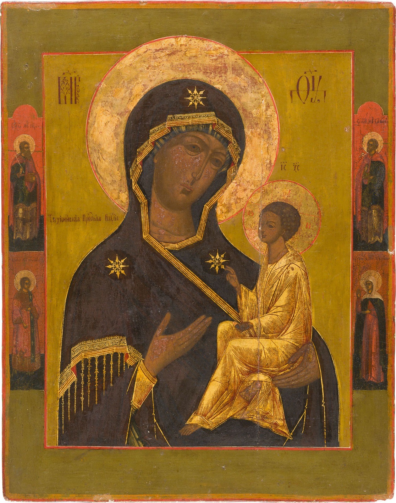 GROSSFORMATIGE UND FEINE IKONE MIT DER GOTTESMUTTER VON TICHWIN (TICHWINSKAJA)