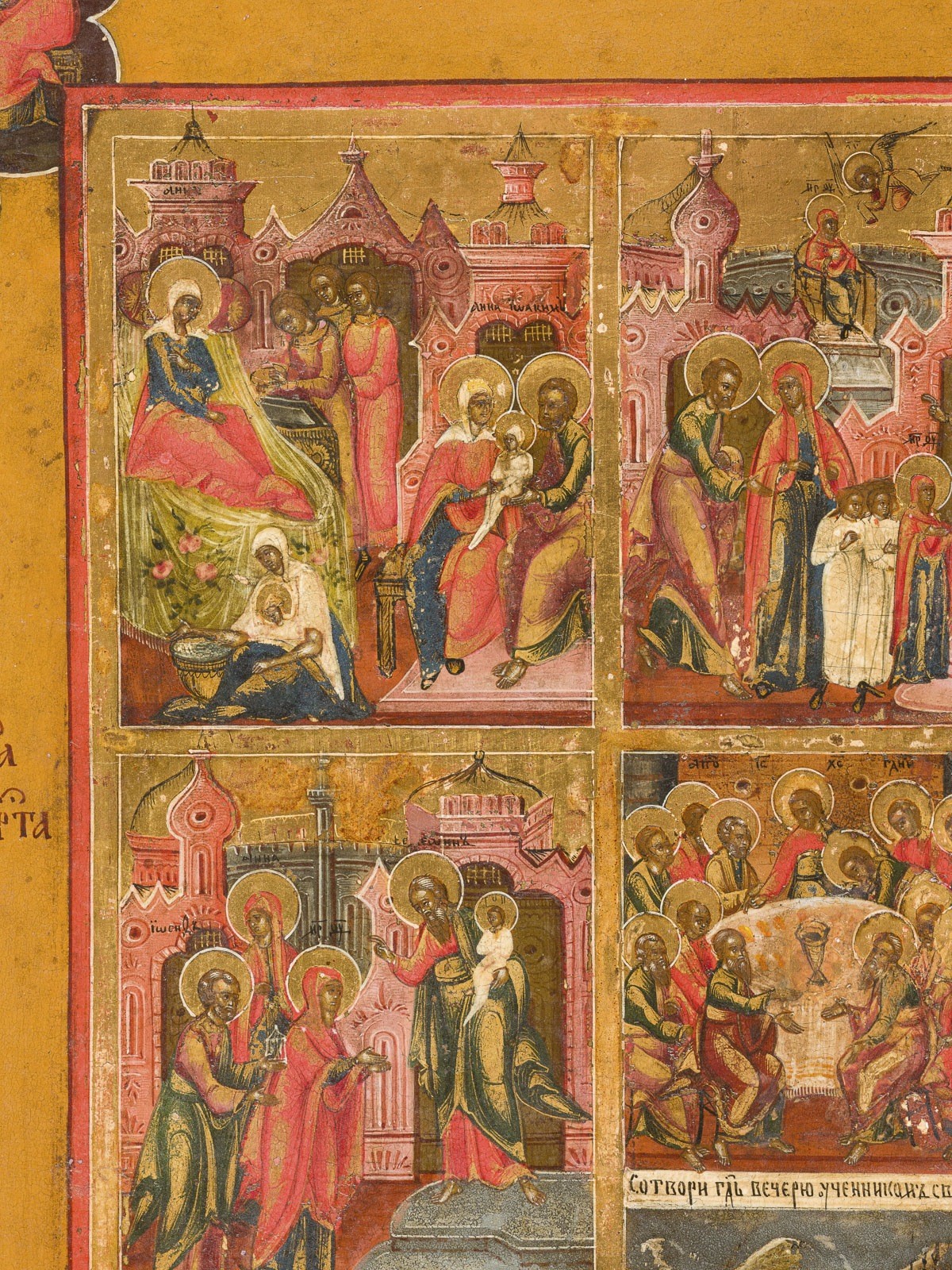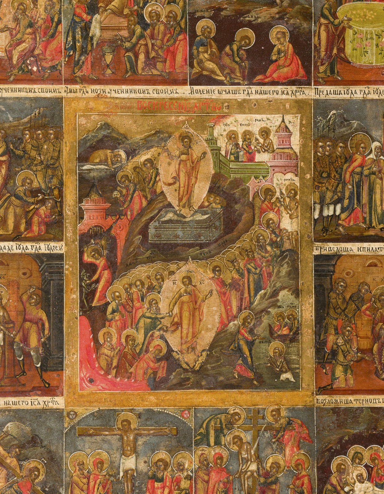 GROSSFORMATIGE UND FEINE IKONE MIT DER HÖLLENFAHRT UND AUFERSTEHUNG, DEM PASSIONSZYKLUS, 16 HOCHFESTEN UND DEN EVANGELISTEN