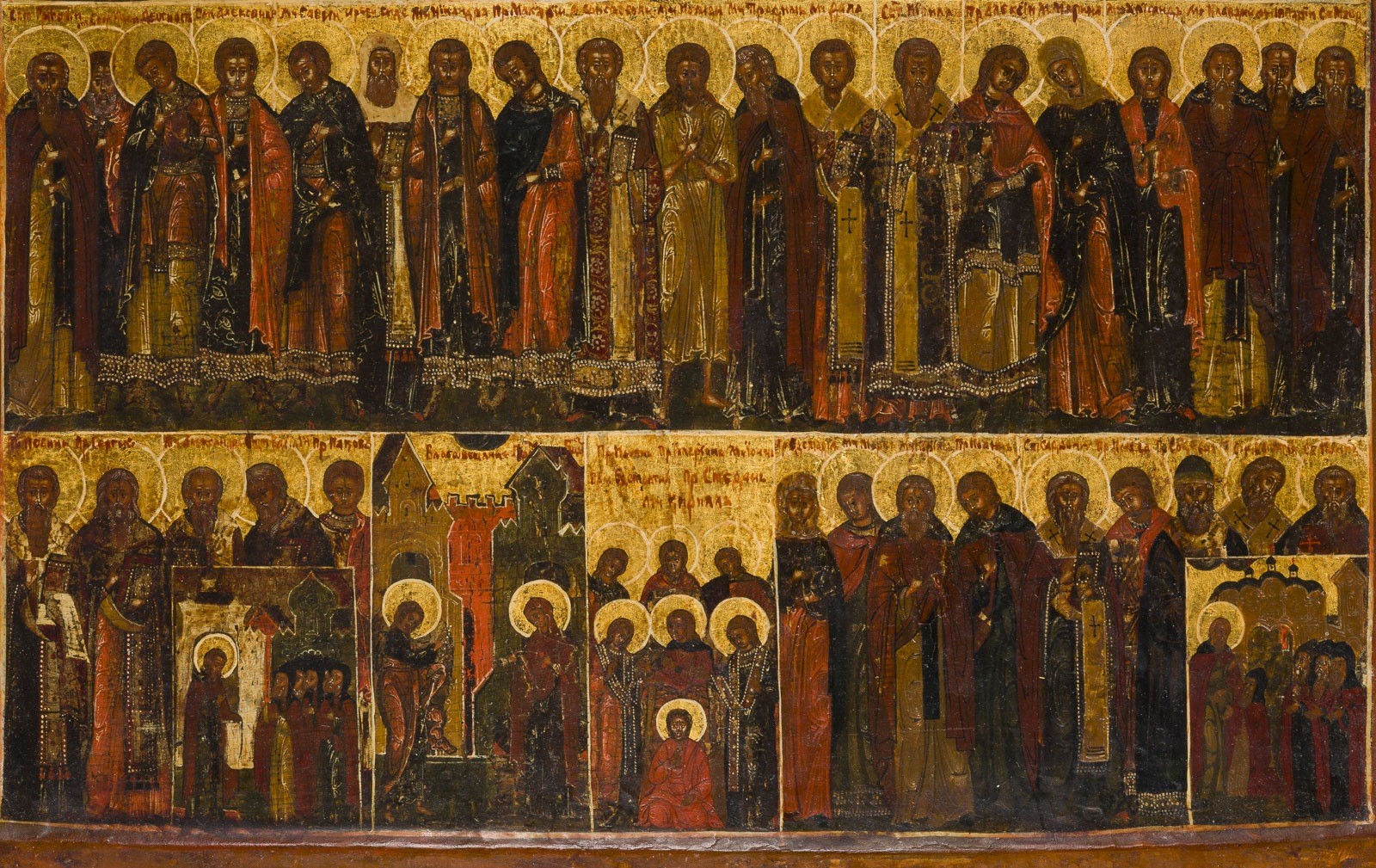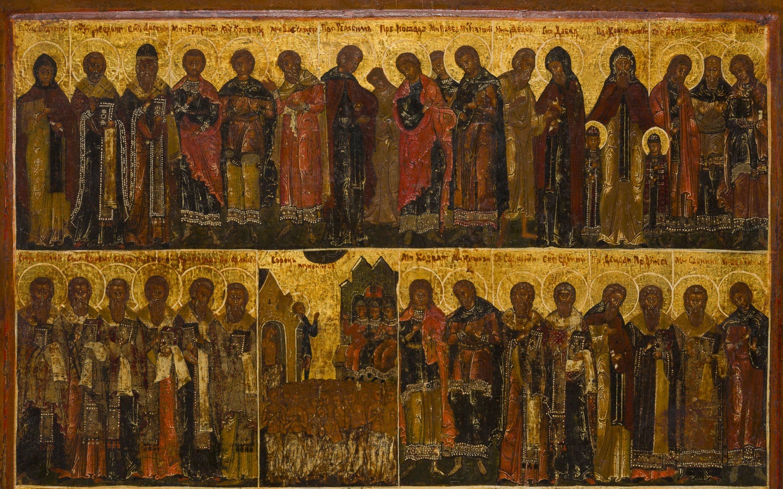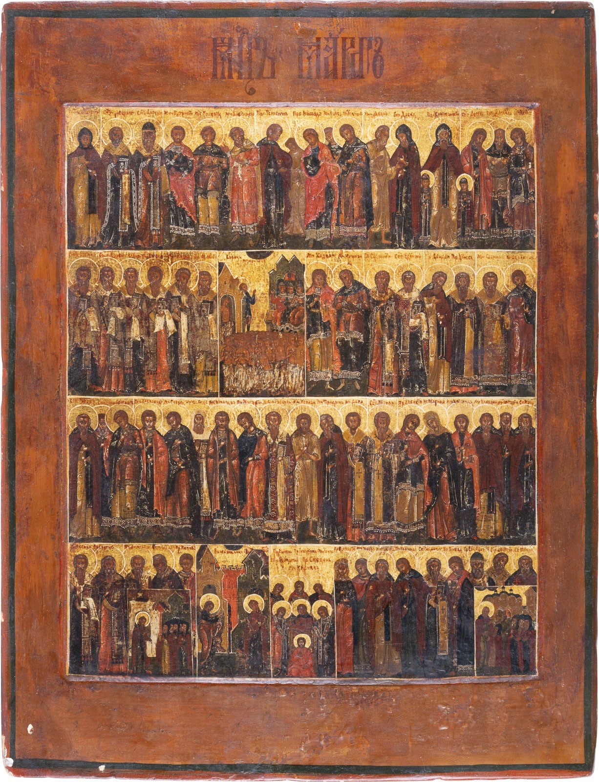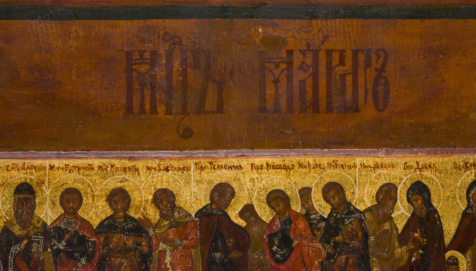 Einzeltafel mit zwei Rückseiten-Sponki (einer verloren). Kowtscheg, Eitempera auf Kreidegrund, Goldgrund. 52 x 40,3 cm. Sehr feine Ausführung der Malerei in dunkler Farbigkeit. Die Gewänder der gelängten
