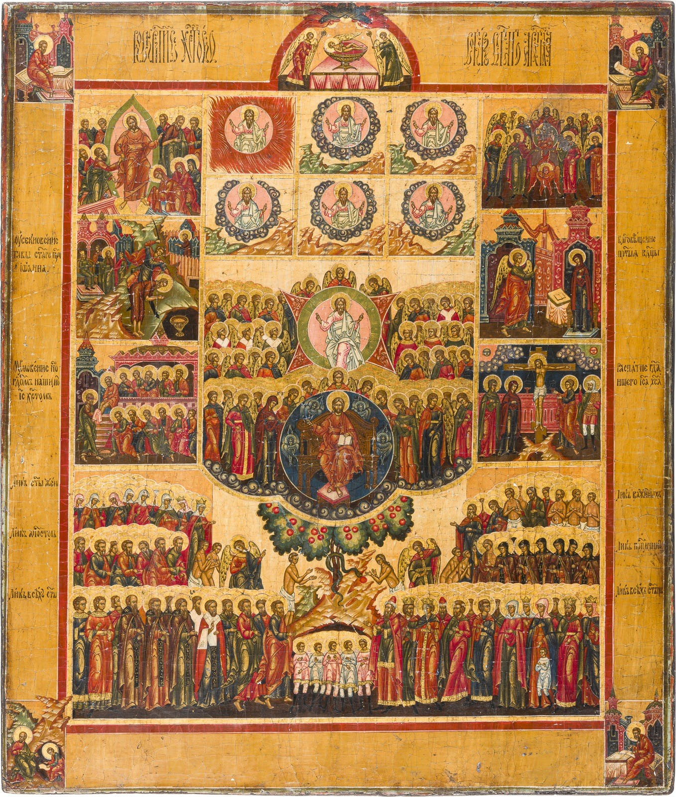Holztafel mit zwei Stirnseiten-Sponki. Ölmalerei auf Leinwand auf Holz, Nimben vergoldet. 47 x 40,3 cm.