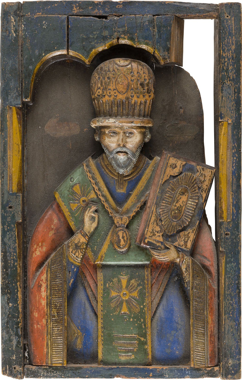 Holz, reliefiert geschnitzt und farbig gefasst. 31,3 x 20,1 cm. Kleinere Substanzverluste.