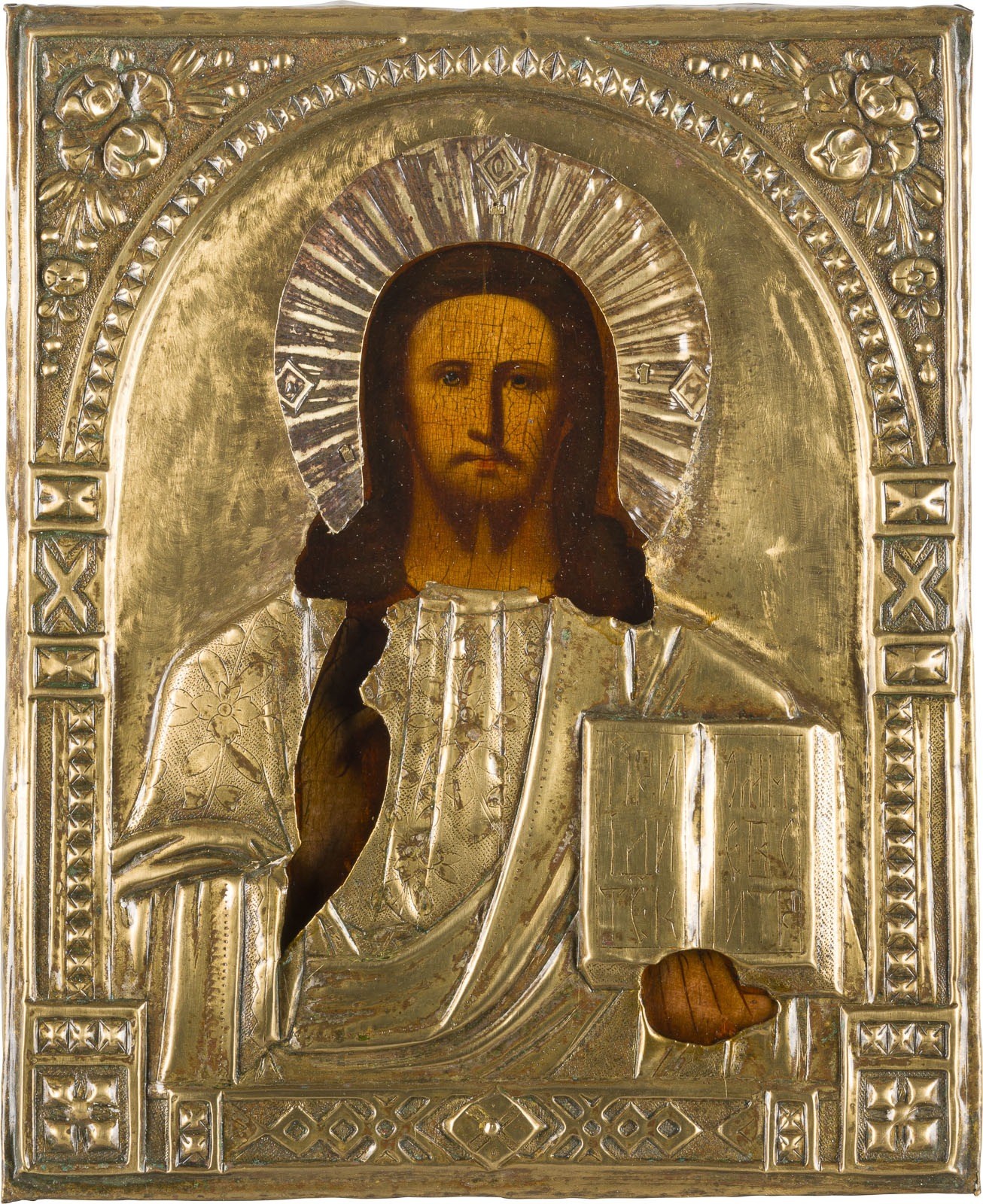 IKONE MIT CHRISTUS PANTOKRATOR MIT OKLAD