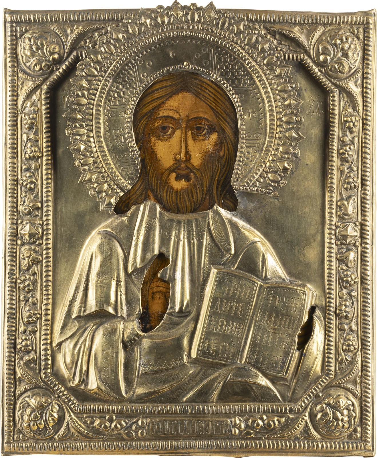 IKONE MIT CHRISTUS PANTOKRATOR MIT OKLAD