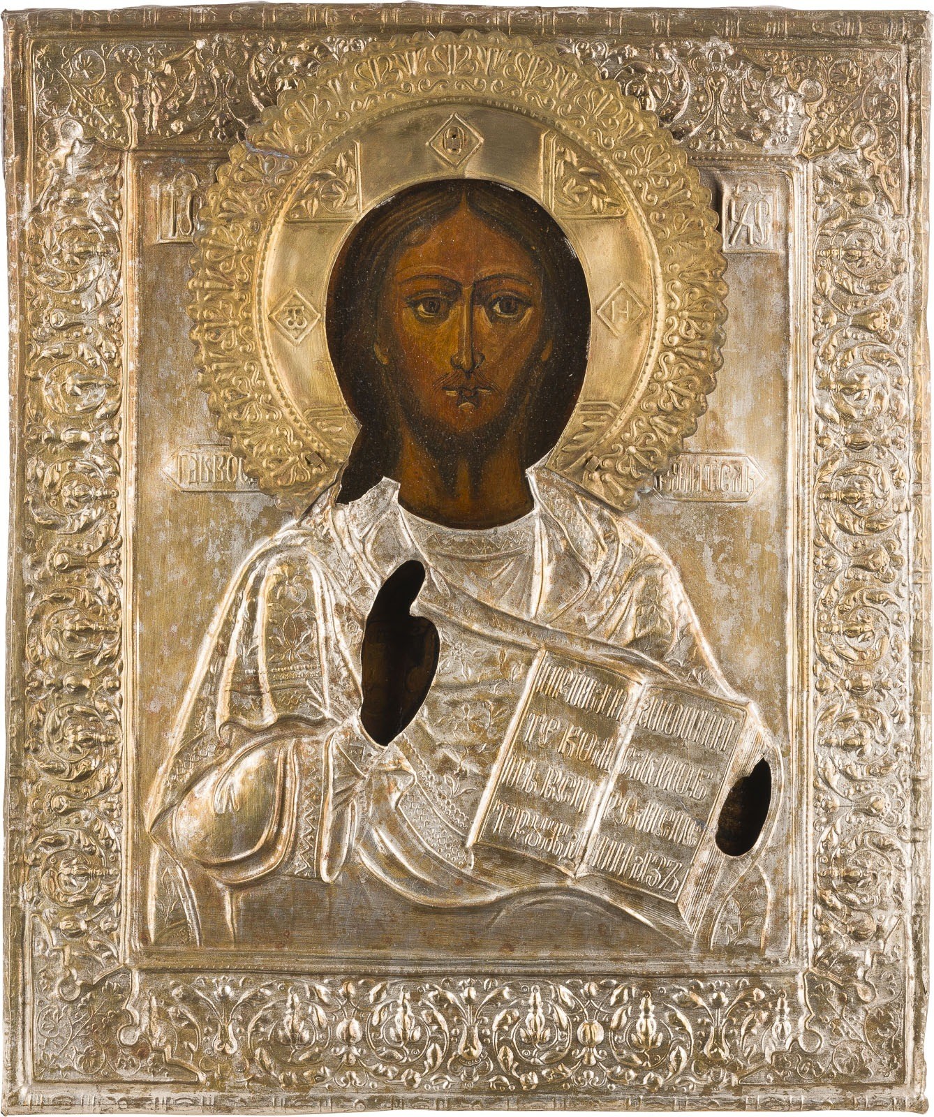 IKONE MIT CHRISTUS PANTOKRATOR MIT OKLAD