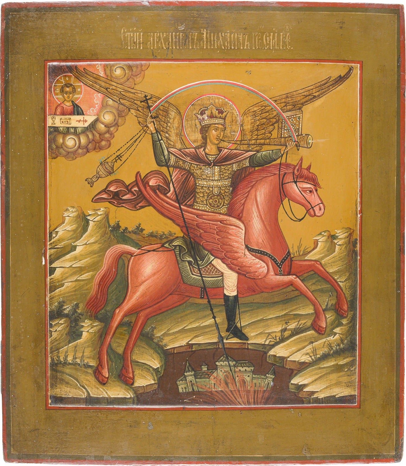 IKONE MIT DEM ERZENGEL MICHAEL ARCHISTRATEGOS ALS APOKALYPTISCHER REITER