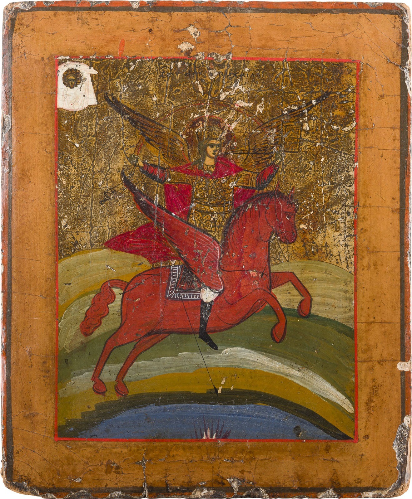 IKONE MIT DEM ERZENGEL MICHAEL ARCHISTRATEGOS ALS APOKALYPTISCHER REITER
