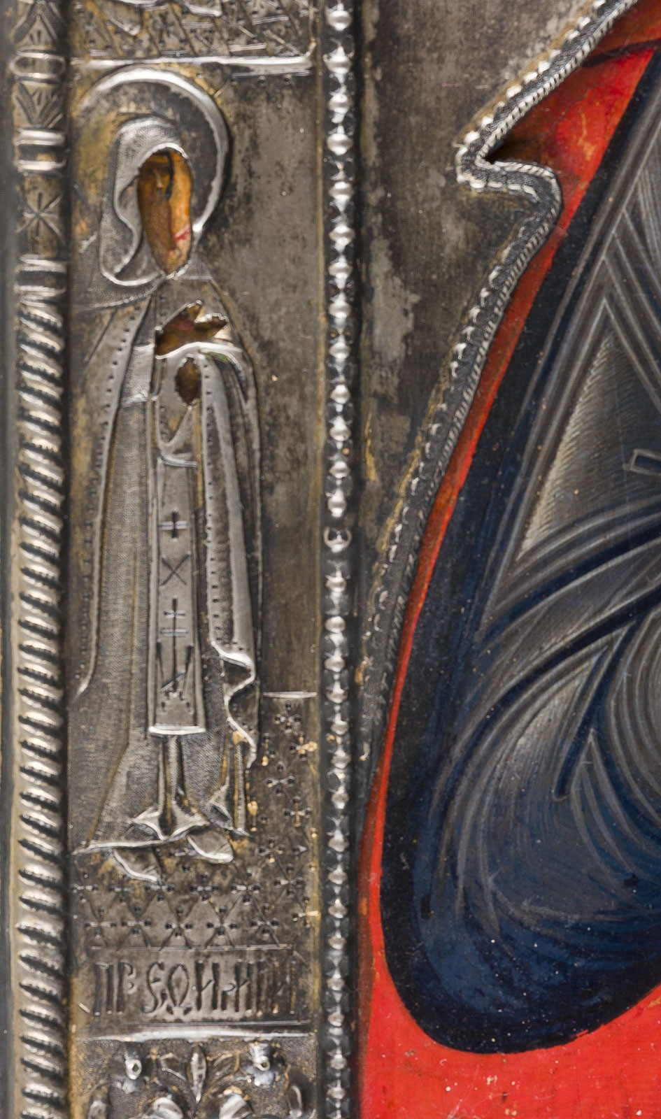 IKONE MIT DEM HEILIGEN BONIFATIUS MIT SILBER-RIZA