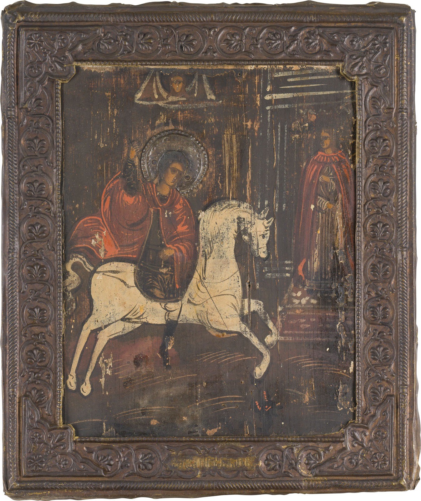 IKONE MIT DEM HEILIGEN GEORG DEM DRACHENTÖTER MIT BASMA