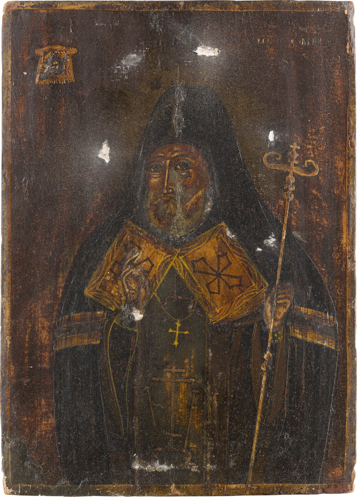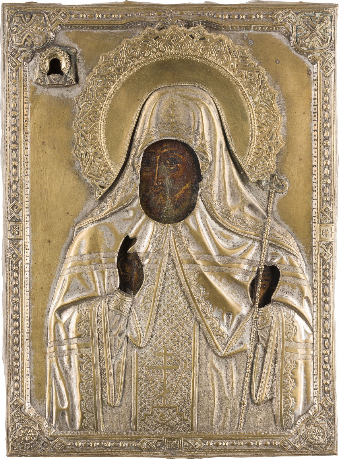 IKONE MIT DEM HEILIGEN MITROFAN VON WORONESCH MIT OKLAD