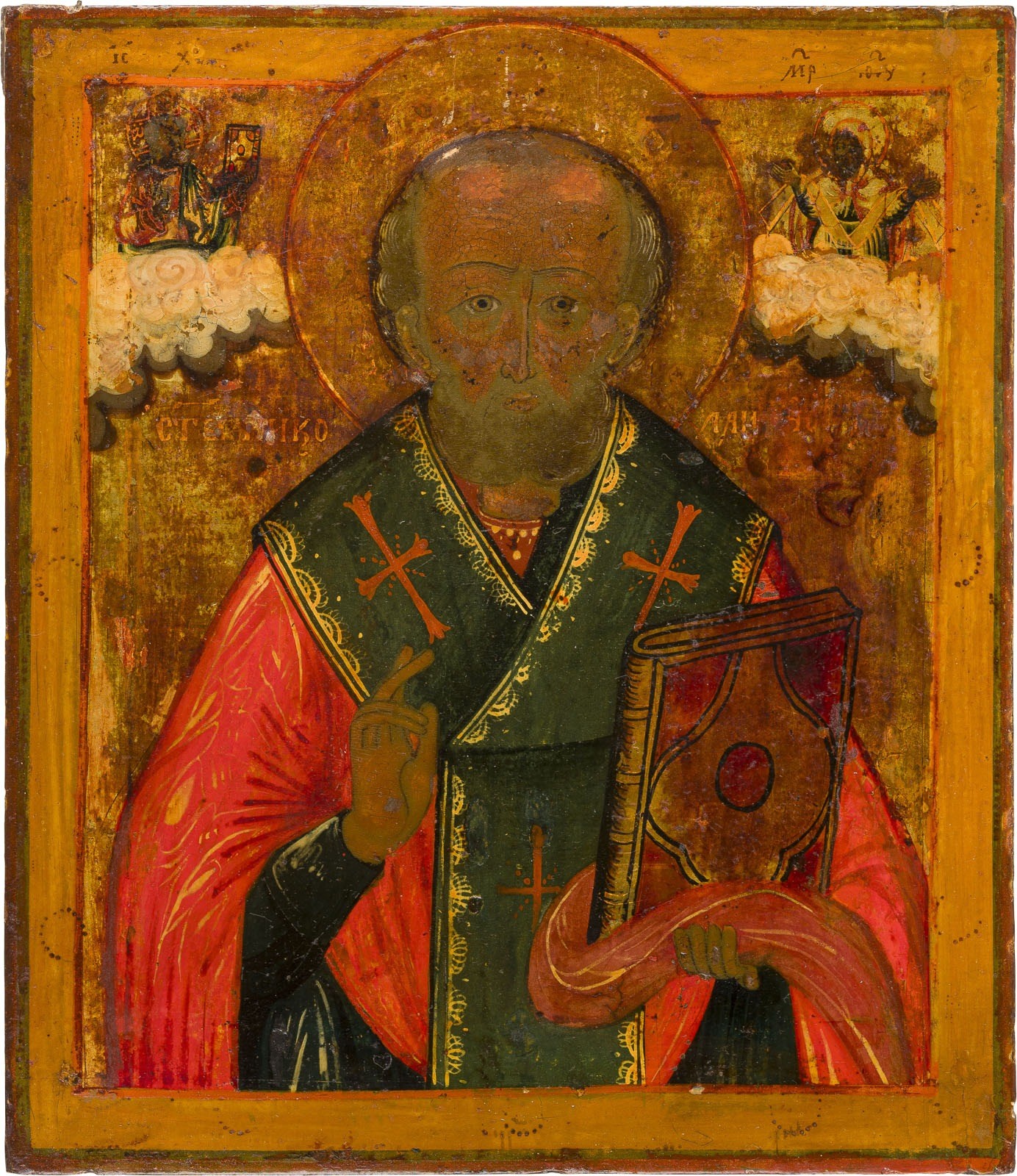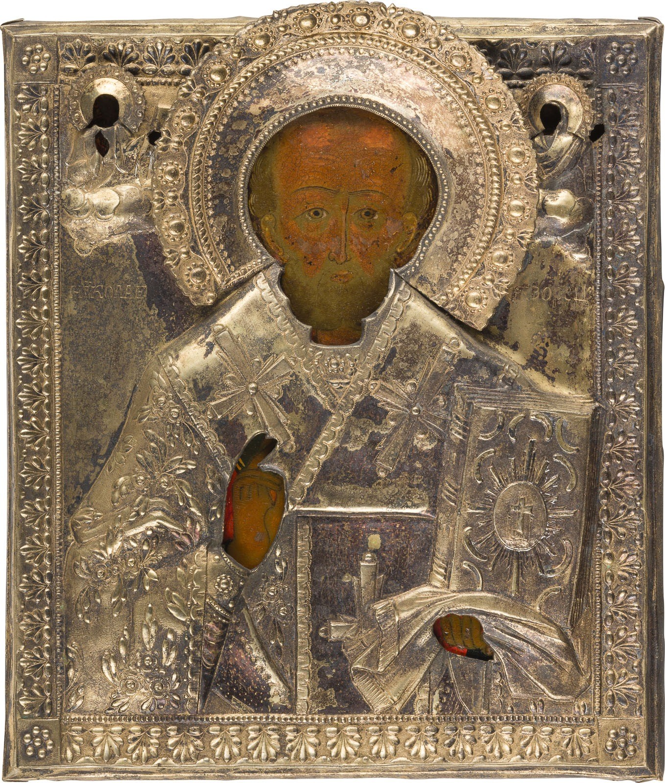 IKONE MIT DEM HEILIGEN NIKOLAUS VON MYRA MIT OKLAD
