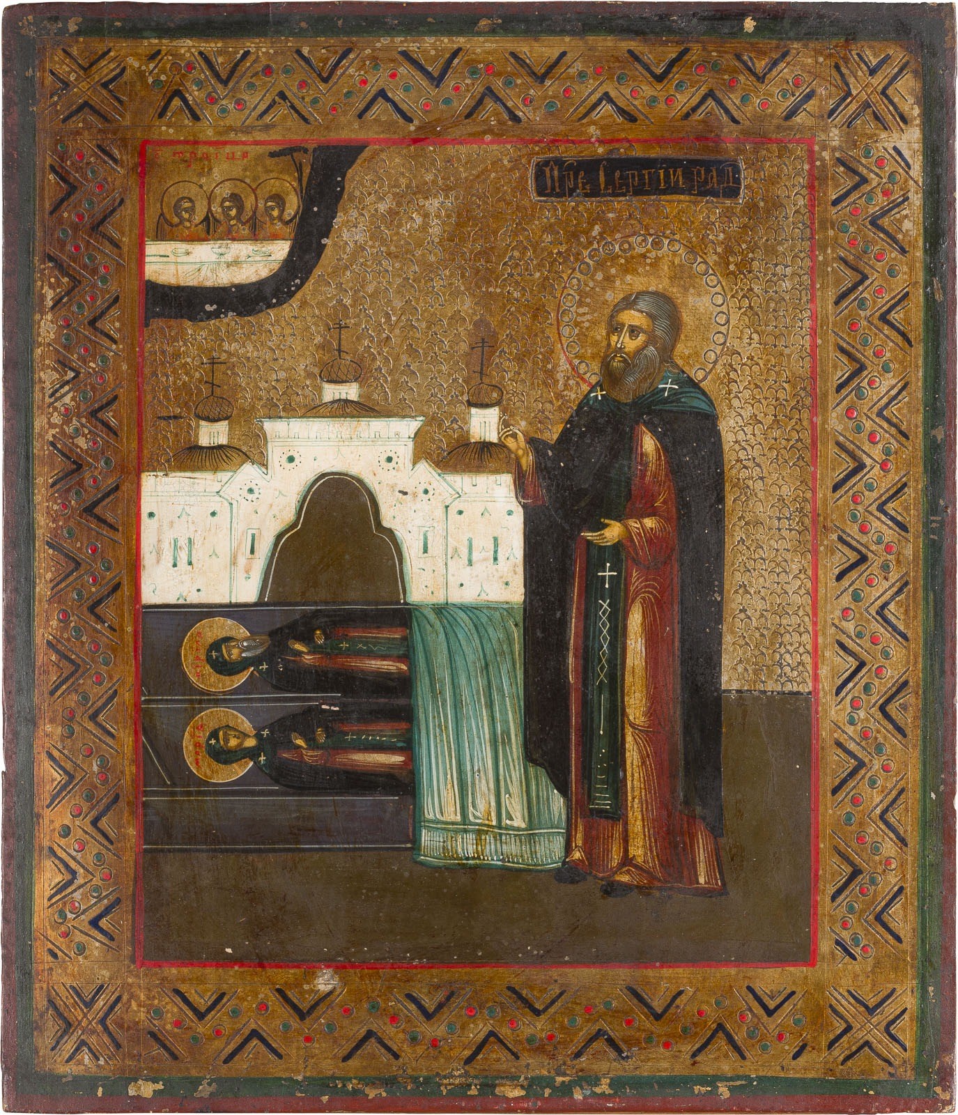 IKONE MIT DEM HEILIGEN SERGEJ VON RADONESCH AM GRAB SEINER ELTERN