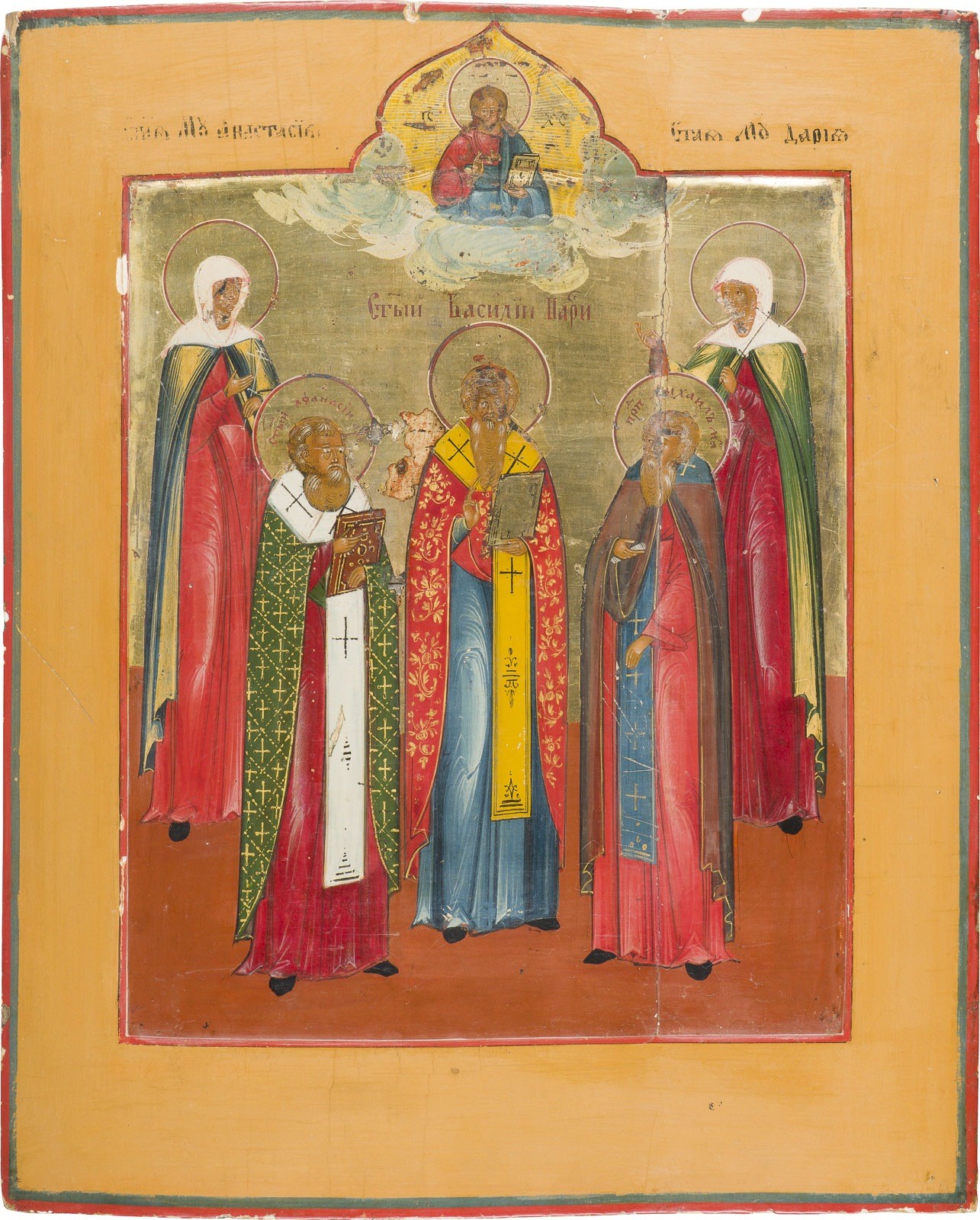 IKONE MIT DEN HEILIGEN ANASTASIA, ATHANASIOS, BASILIUS DEM GROSSEN, MICHAEL UND DARIA