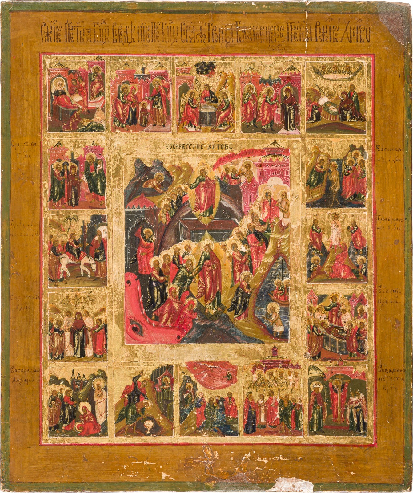 IKONE MIT DER AUFERSTEHUNG UND HÖLLENFAHRT MIT 16 HOCHFESTEN DES ORTHODOXEN KIRCHENJAHRES