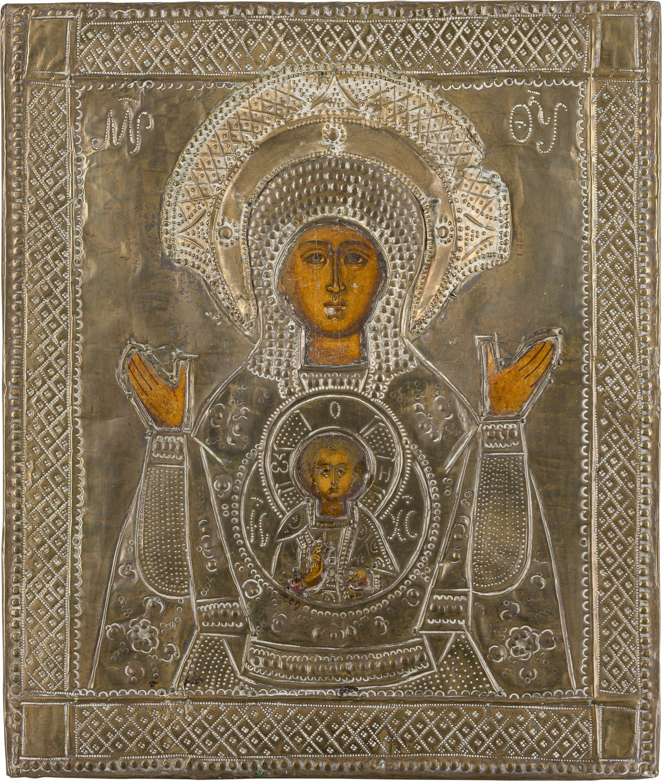 IKONE MIT DER GOTTESMUTTER DES ZEICHENS (ZNAMENIE) MIT OKLAD