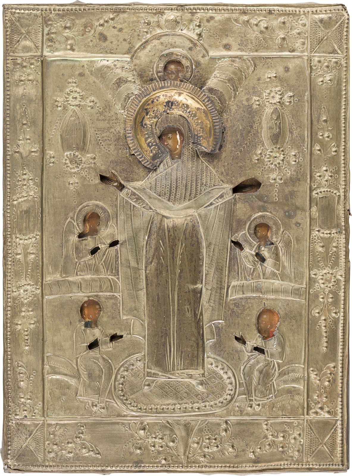 IKONE MIT DER GOTTESMUTTER 'FREUDE ALLER LEIDENDEN' MIT OKLAD