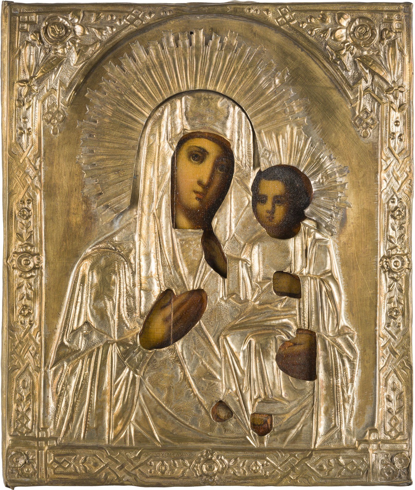 IKONE MIT DER GOTTESMUTTER 'IWERSKAJA' MIT OKLAD
