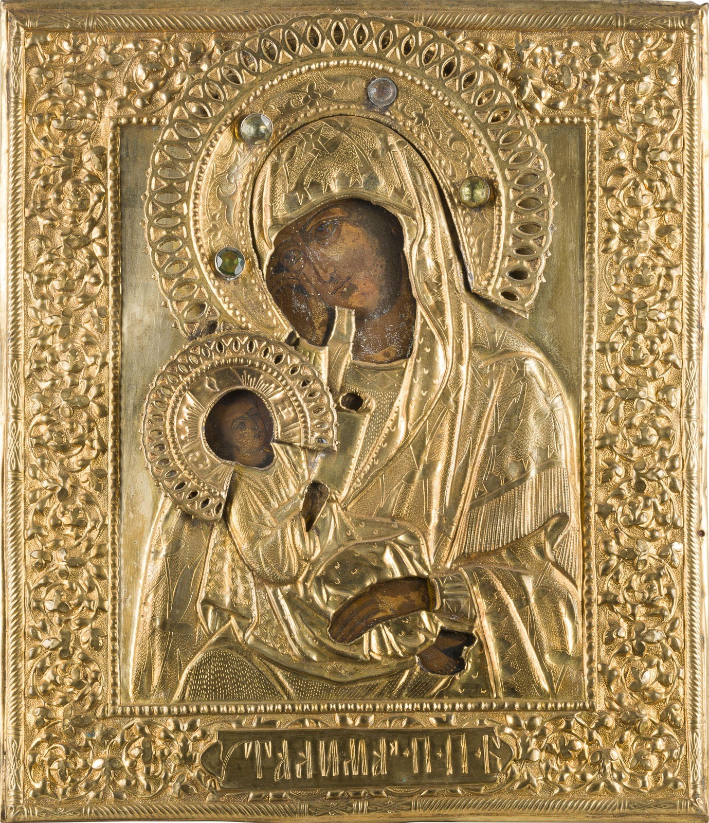 IKONE MIT DER GOTTESMUTTER 'LINDERE MEINEN KUMMER' MIT OKLAD