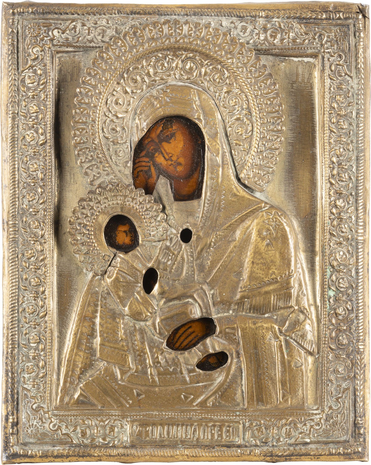 IKONE MIT DER GOTTESMUTTER 'LINDERE MEINEN KUMMER' MIT OKLAD