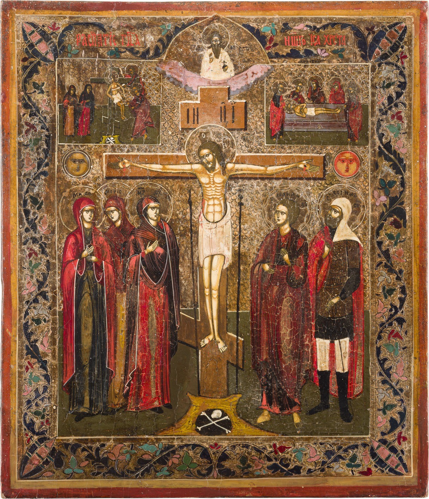 IKONE MIT DER KREUZIGUNG CHRISTI, DER KREUZABNAHME UND GRABLEGUNG CHRISTI
