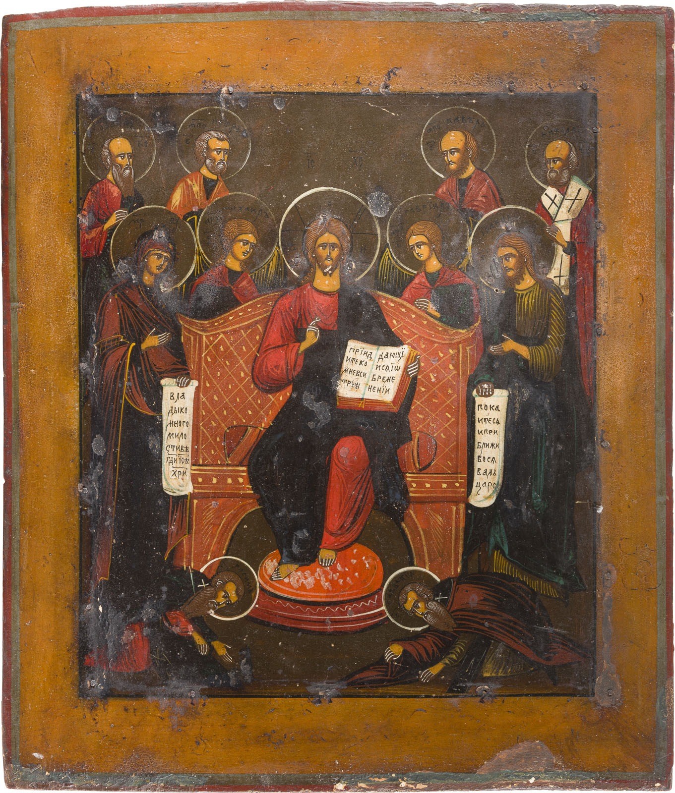 Einzeltafel mit zwei Rückseiten-Sponki (eine verloren). Eitempera auf Kreidegrund. 35,4 x 30 cm. Substanzverluste im Randbereich.