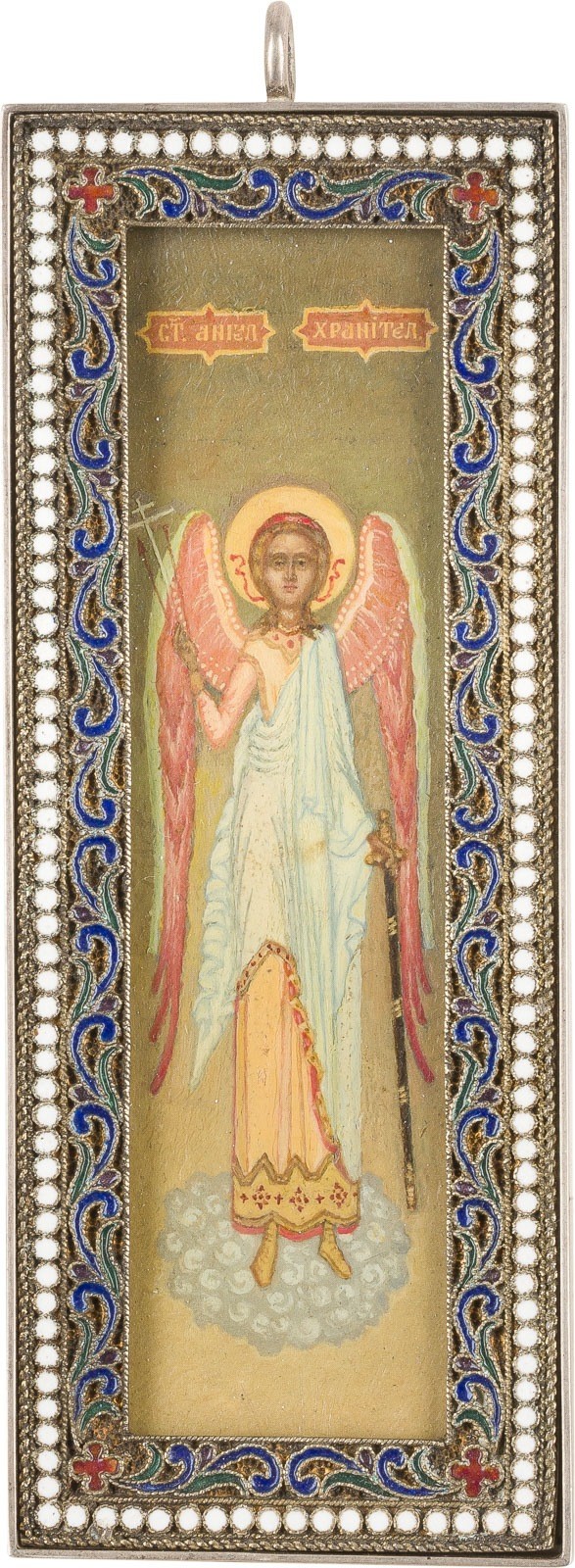 IKONEN-ANHÄNGER MIT DEM SCHUTZENGEL MIT CLOISONNÉ-EMAIL-BASMA