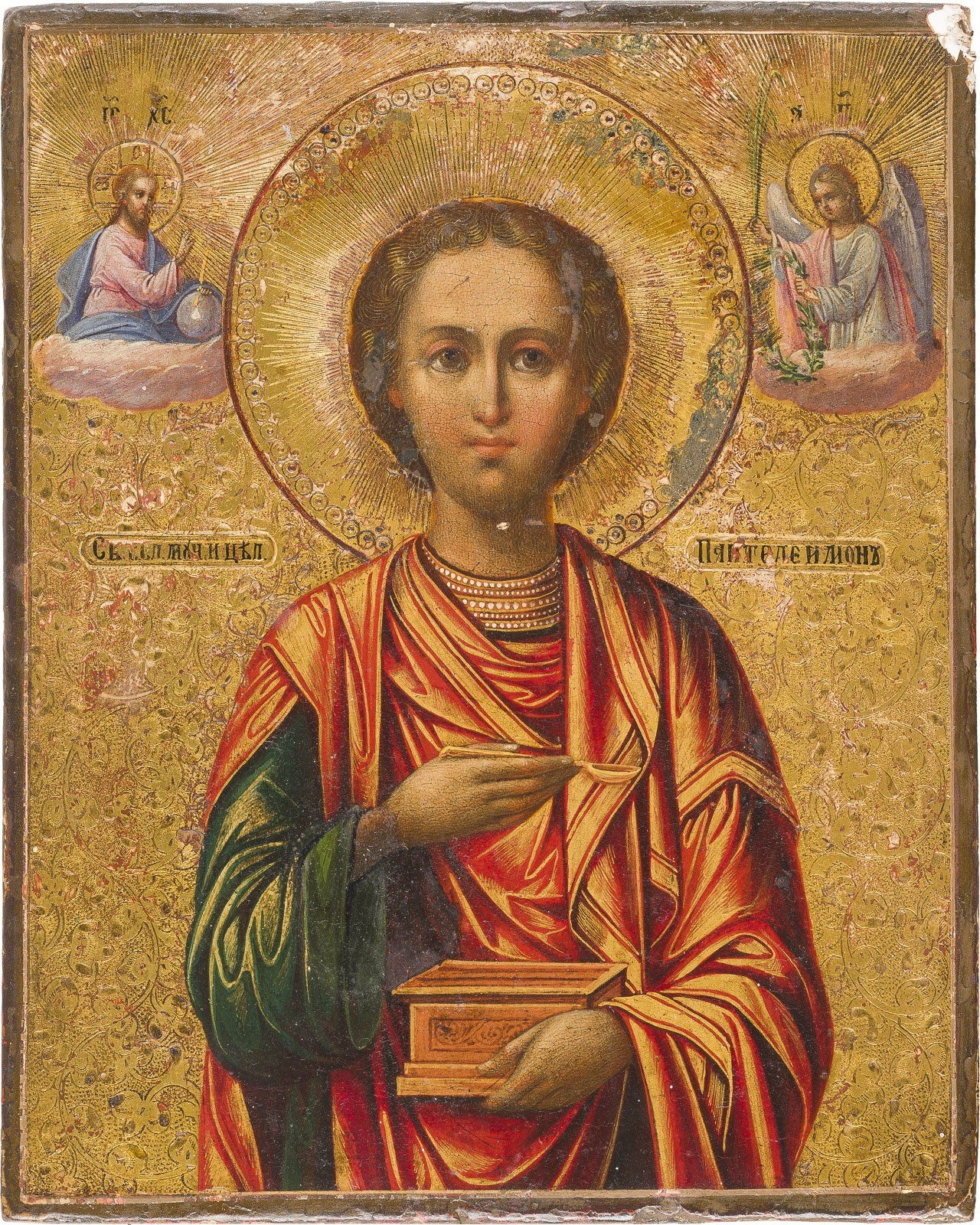 KLEINE DATIERTE UND FEINE IKONE MIT DEM HEILIGEN PANTELEIMON
