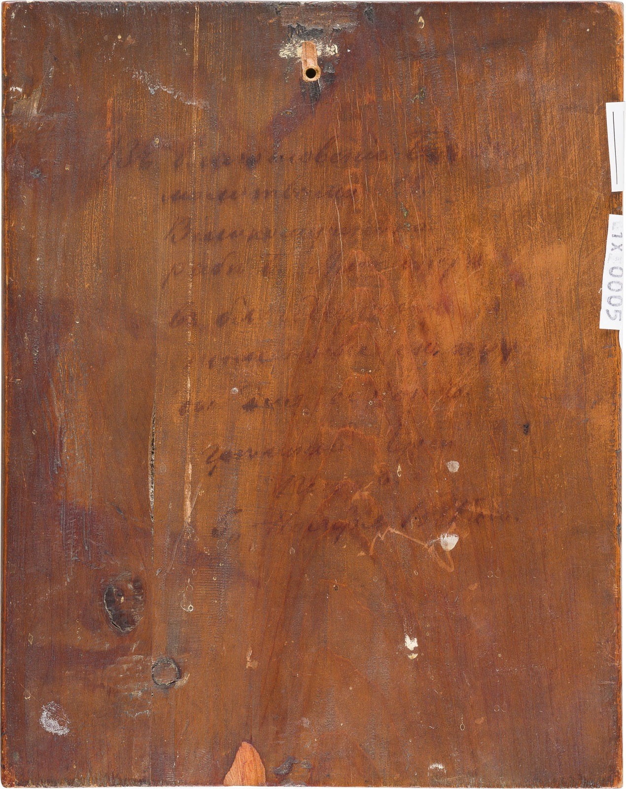 Laubholz-Einzeltafel. Eitempera auf Kreidegrund. Goldgrund ornamental graviert. 17,5 x 14 cm. Verso kyrillische Widmungsinschrift mit Jahresangabe. Kanten min. best.