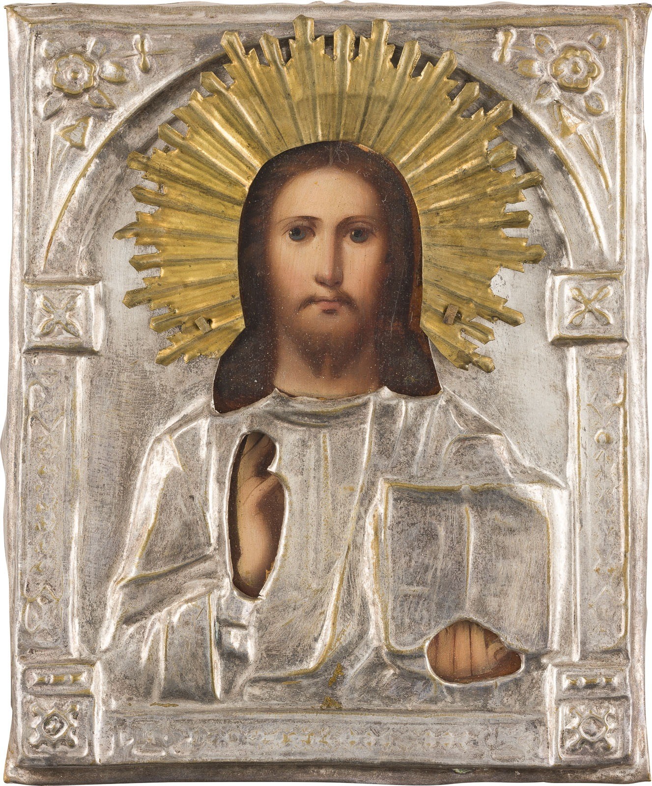 KLEINE IKONE MIT CHRISTUS PANTOKRATOR MIT OKLAD