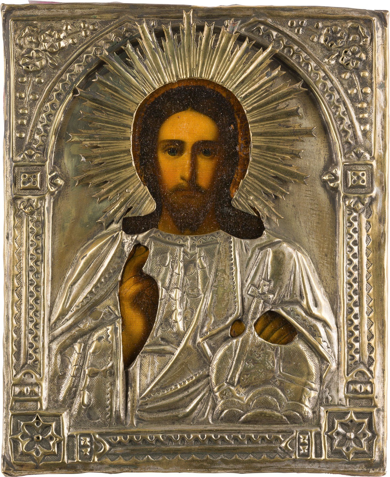 KLEINE IKONE MIT CHRISTUS PANTOKRATOR MIT OKLAD