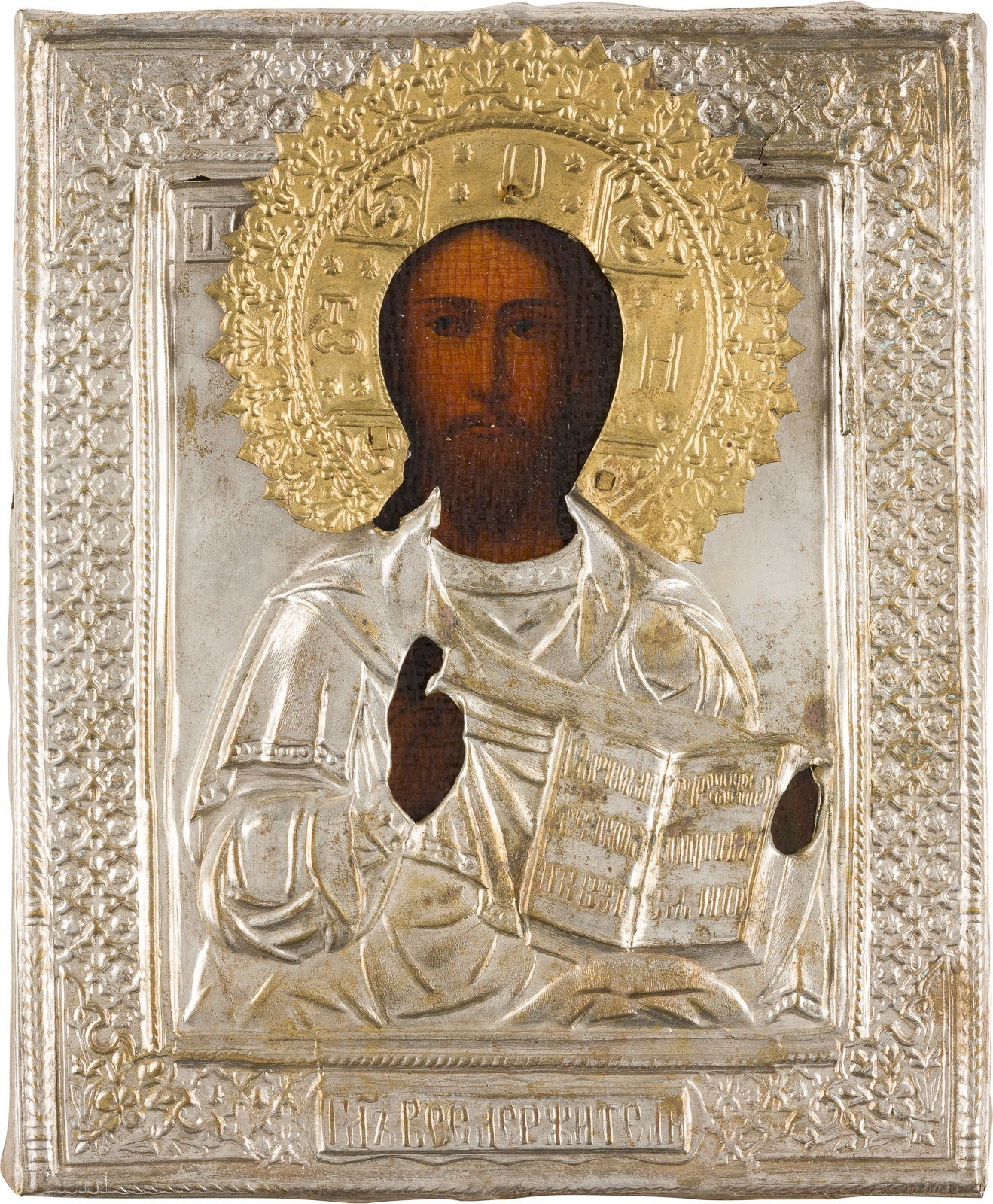 KLEINE IKONE MIT CHRISTUS PANTOKRATOR MIT OKLAD