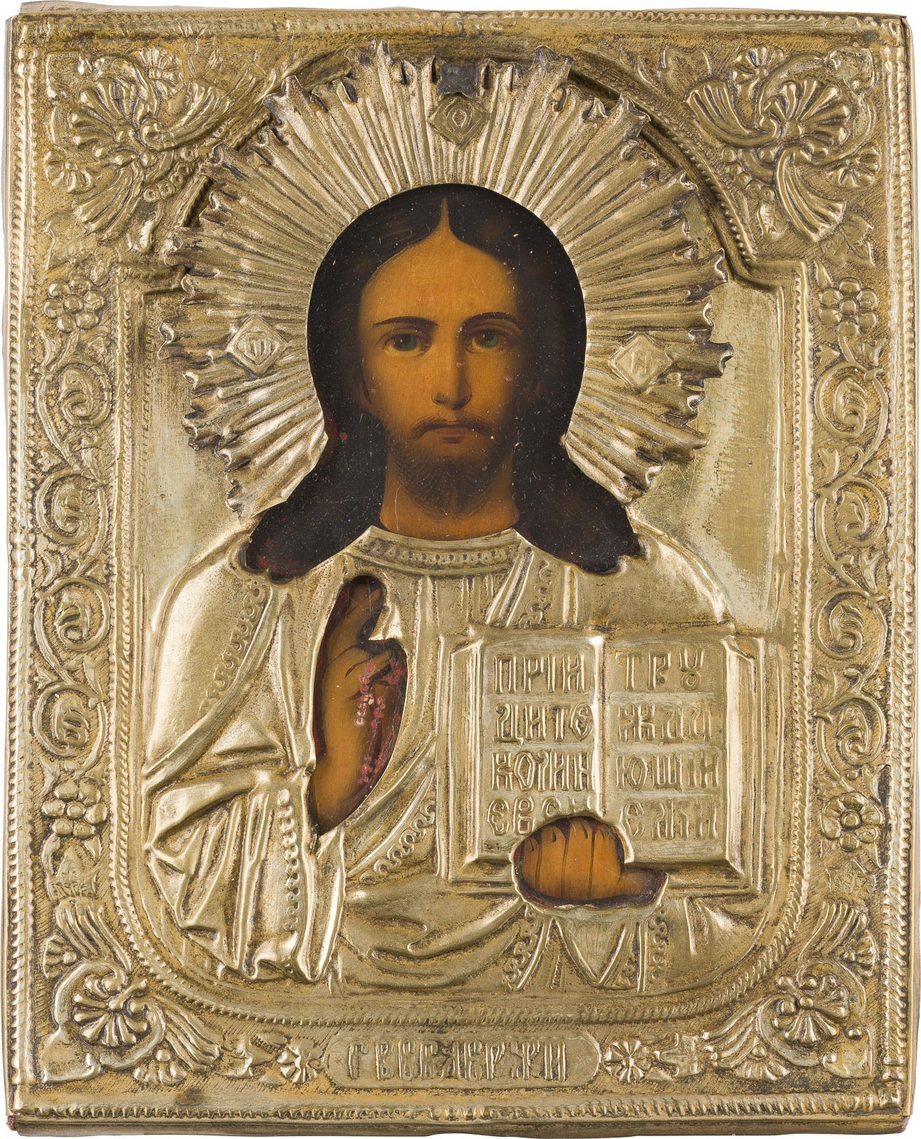 KLEINE IKONE MIT CHRISTUS PANTOKRATOR MIT OKLAD