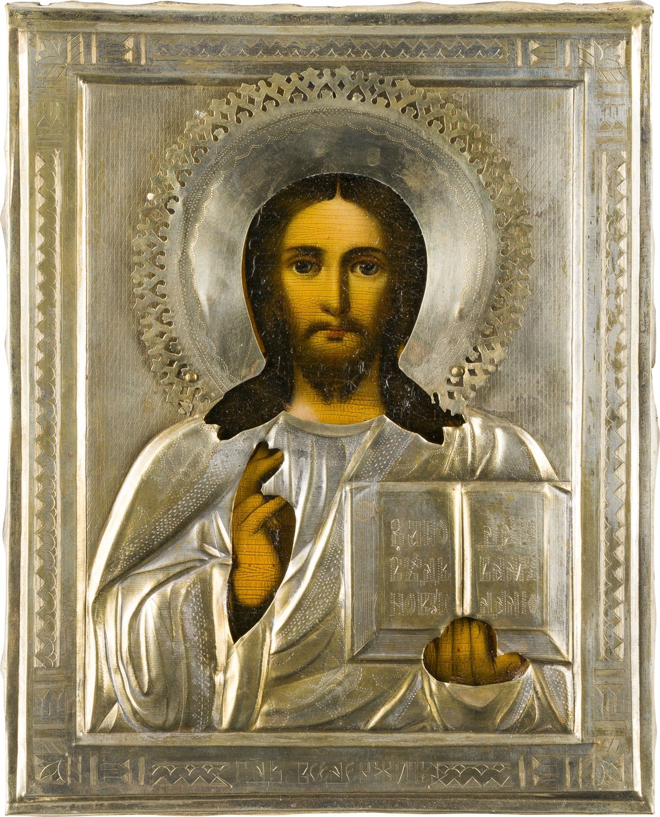 KLEINE IKONE MIT CHRISTUS PANTOKRATOR MIT OKLAD