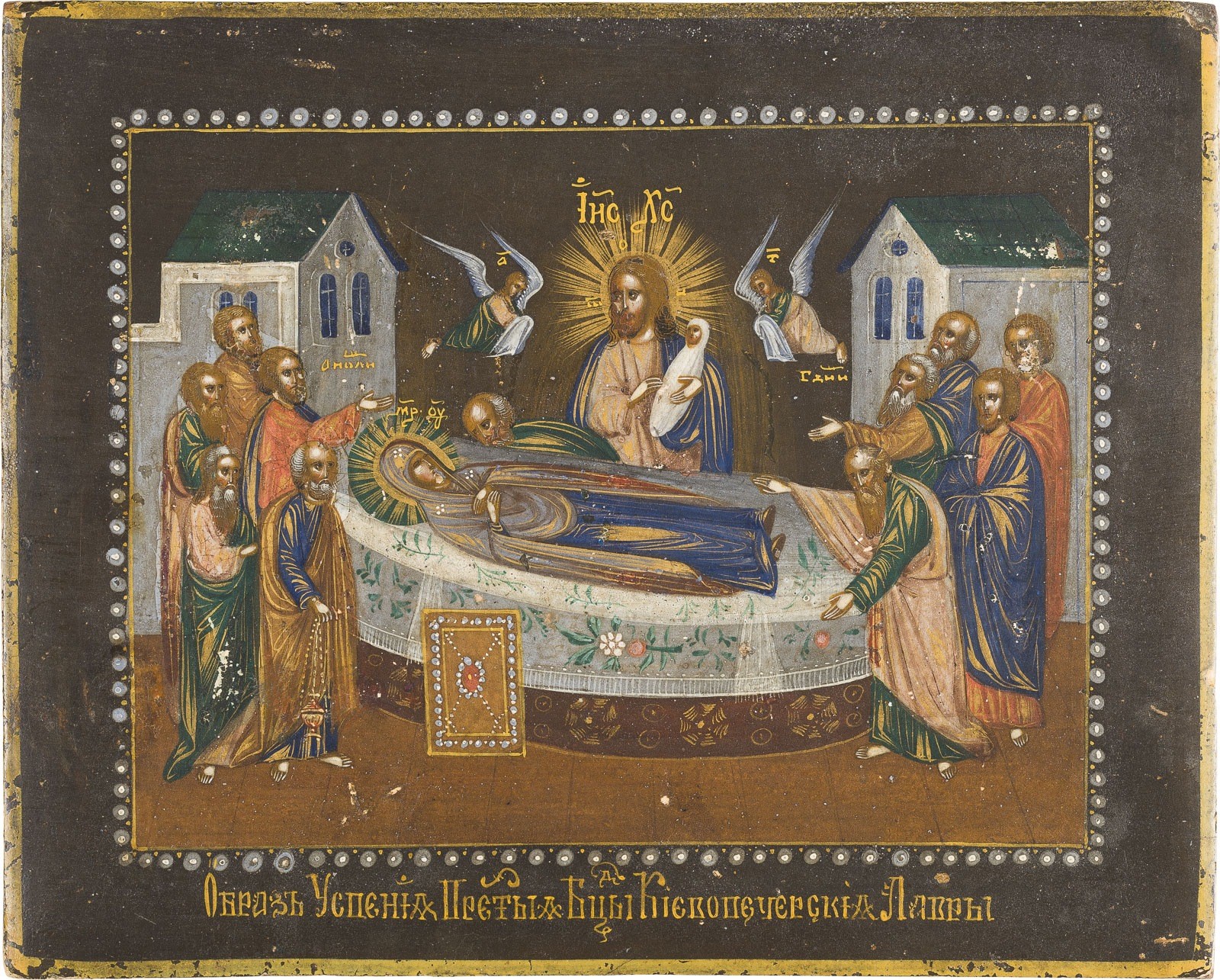 KLEINE IKONE MIT DEM ENTSCHLAFEN DER GOTTESMUTTER (KOIMESIS) NACH DEM VORBILD DER ENTSCHLAFEN-IKONE IM KIEW