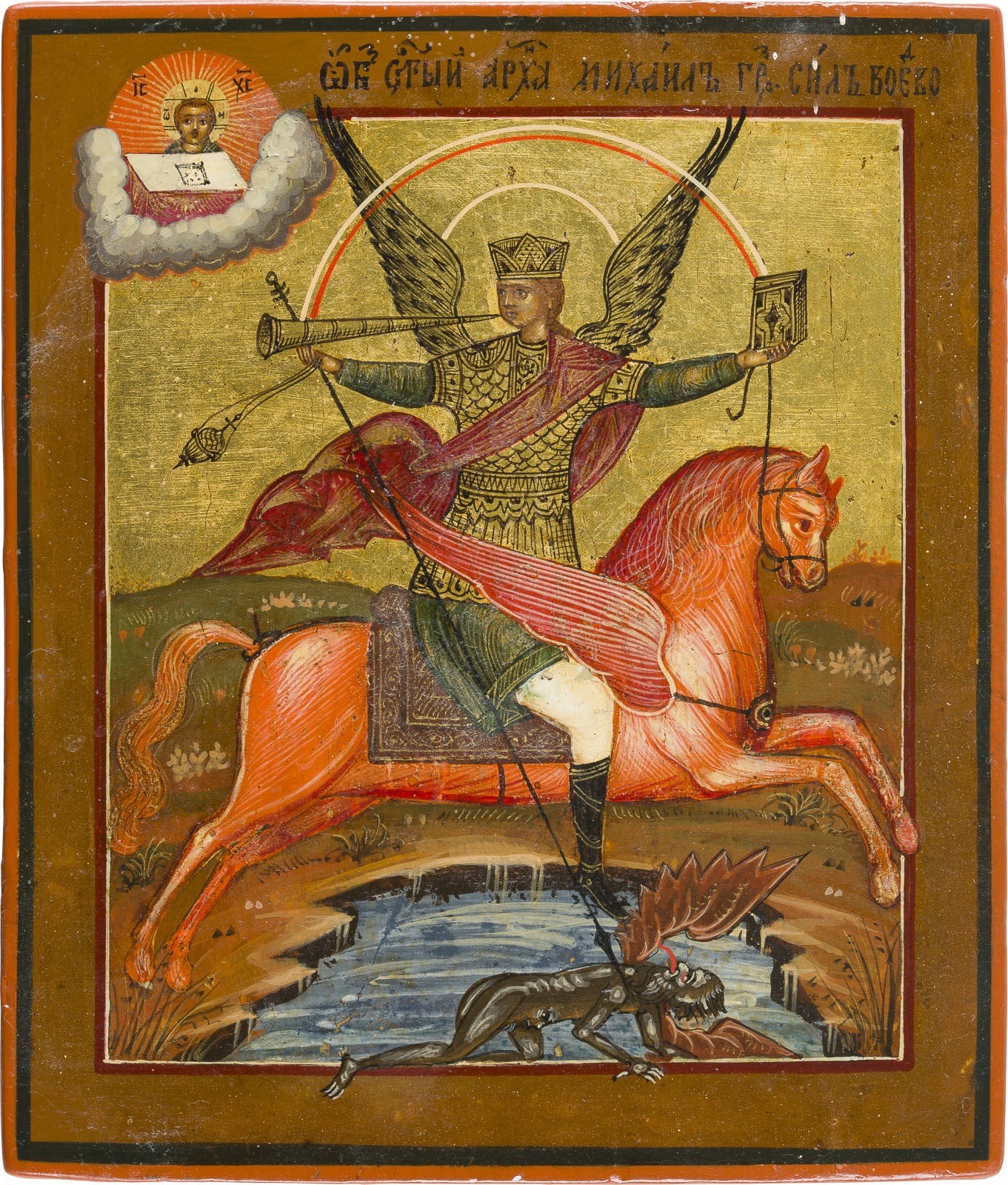 KLEINE IKONE MIT DEM ERZENGEL MICHAEL ARCHISTRATEGOS ALS APOKALYPTISCHER REITER