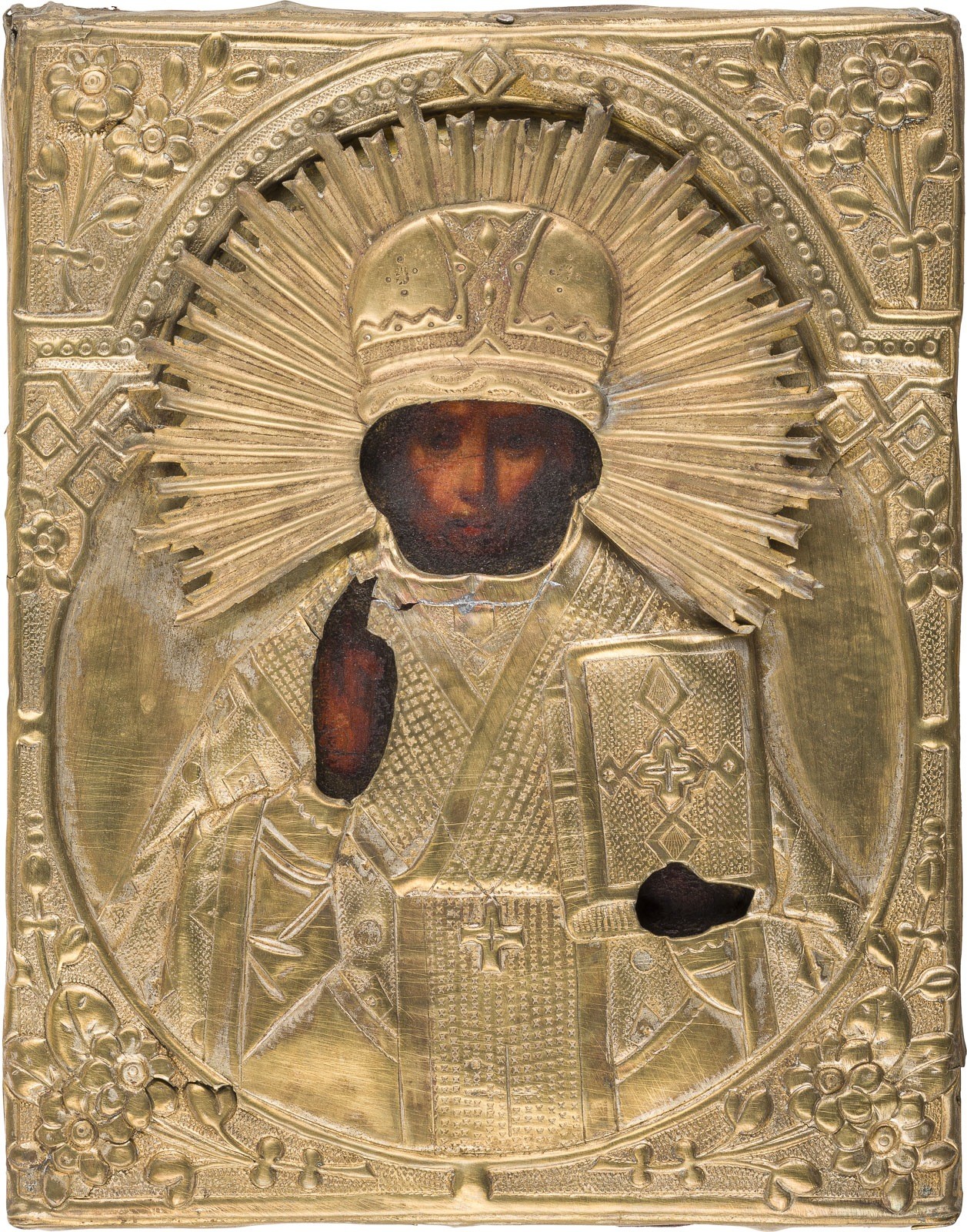 KLEINE IKONE MIT DEM HEILIGEN NIKOLAUS VON MYRA MIT OKLAD