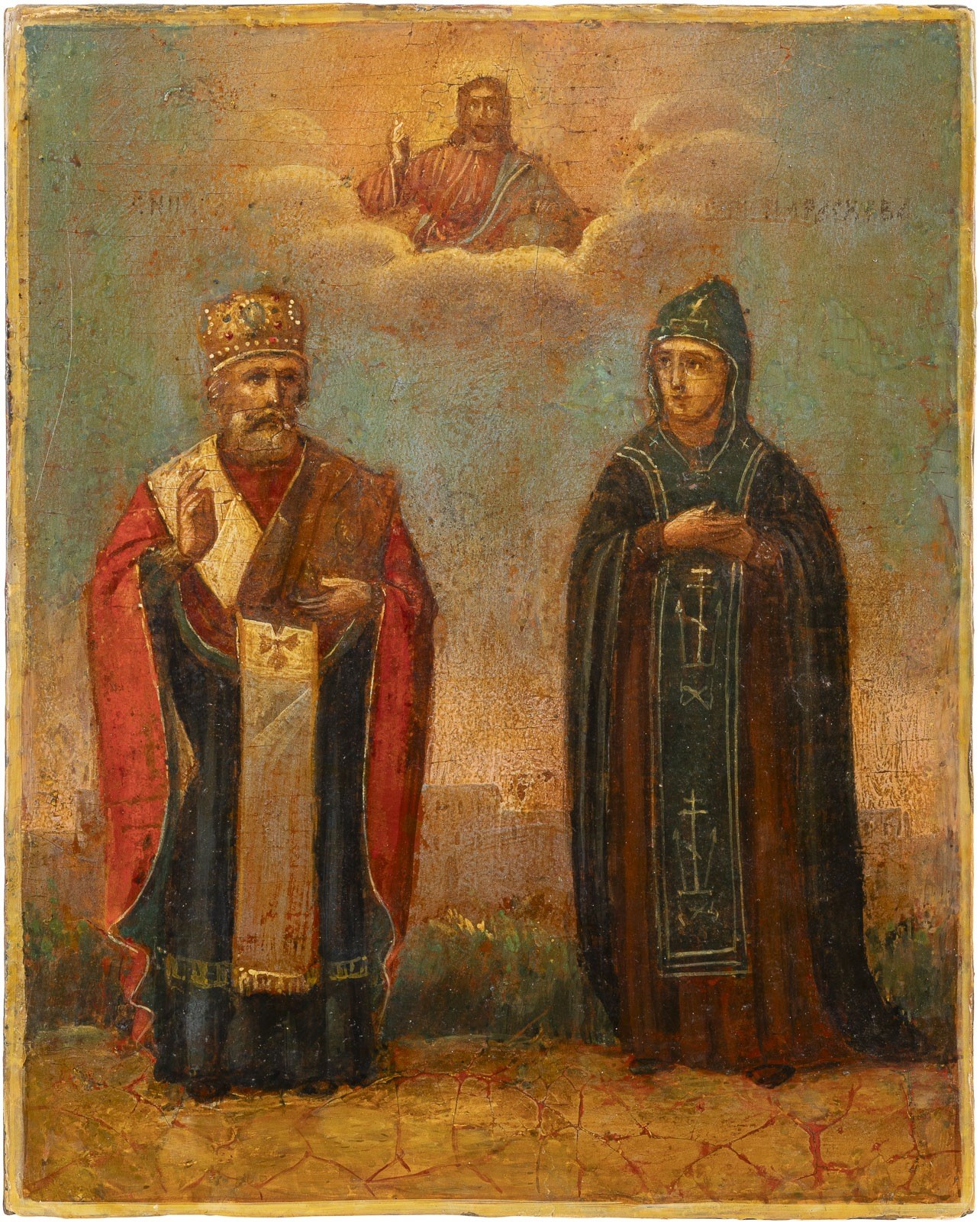 KLEINE IKONE MIT DEM HEILIGEN NIKOLAUS VON MYRA UND EINER NONNE