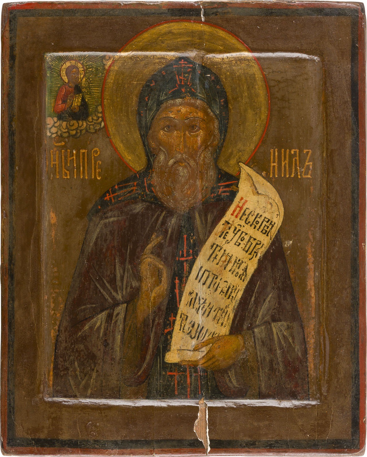 KLEINE IKONE MIT DEM HEILIGEN NIL VON STOLOBNOE