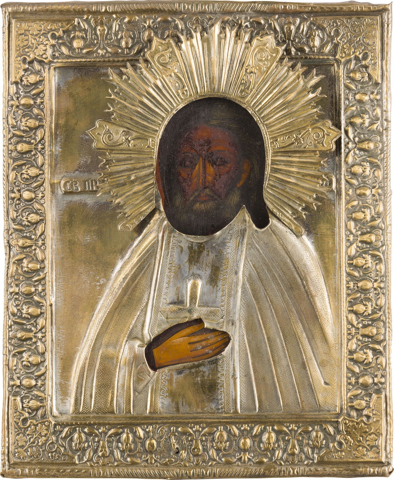 KLEINE IKONE MIT DEM HEILIGEN SERAFIM VON SAROW MIT OKLAD