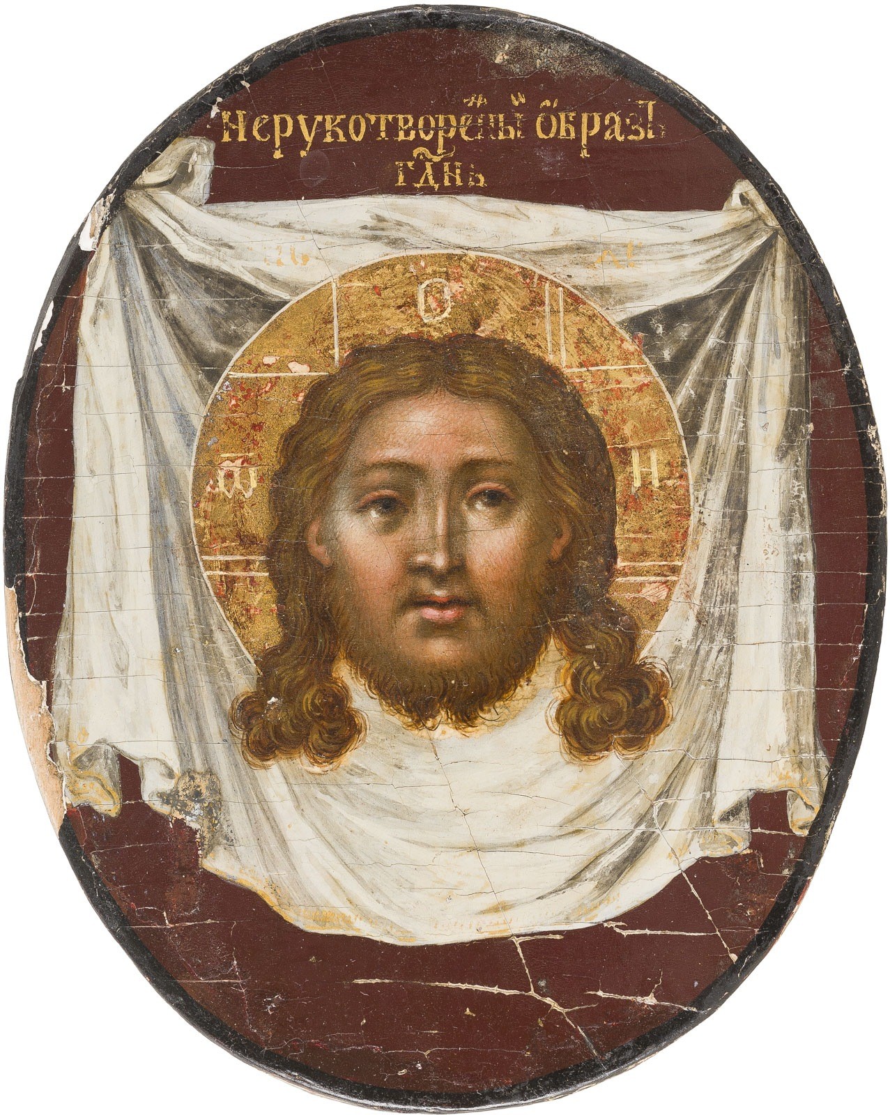 Einzeltafel. Eitempera auf Kreidegrund, Nimbus vergoldet. 12,5 x 9,9 cm. Feine Schattierung des Inkarnates. Kleinere Substanzverluste im Randbereich.