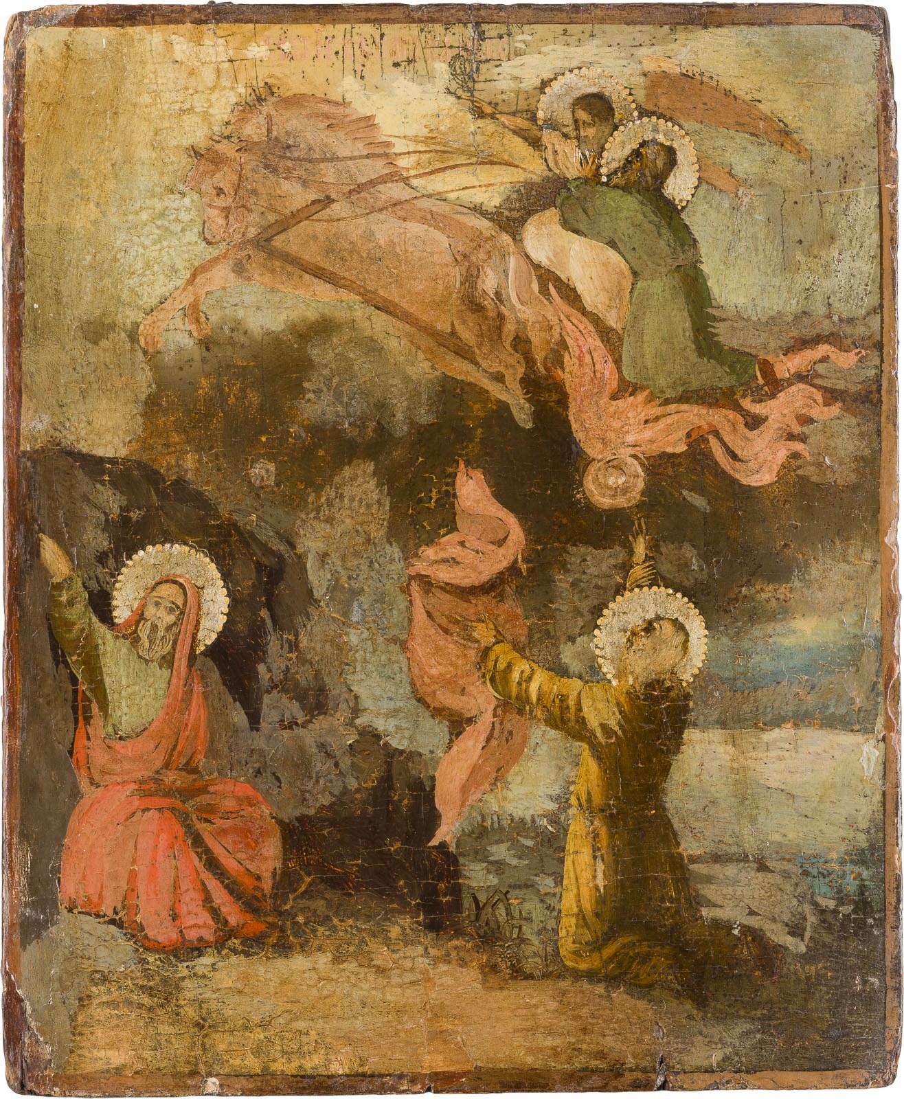 KLEINE IKONE MIT DEM PROPHETEN ELIAS UND SEINER FEURIGEN HIMMELFAHRT