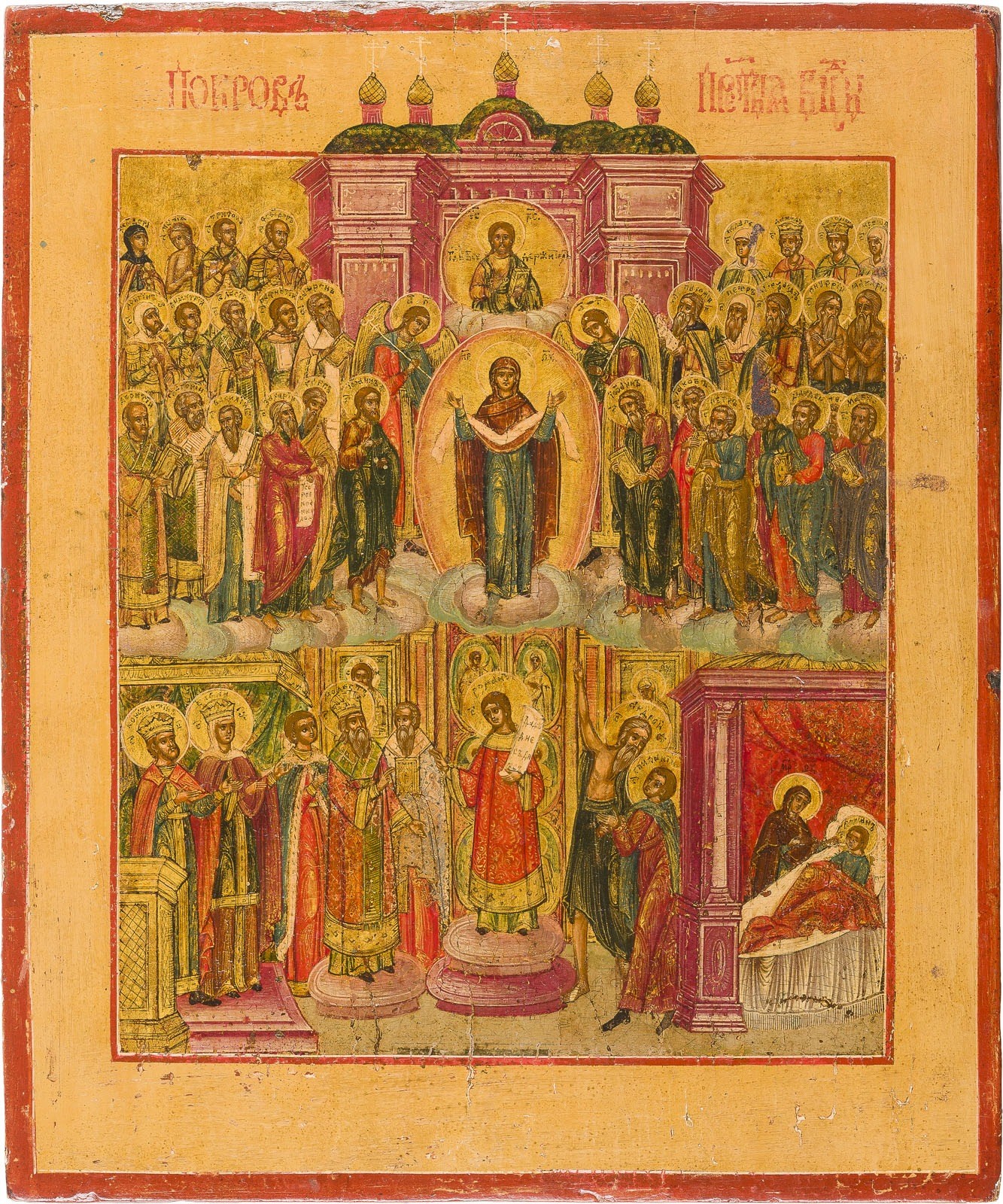 KLEINE IKONE MIT DEM SCHLEIERWUNDER DER GOTTESMUTTER (POKROW)