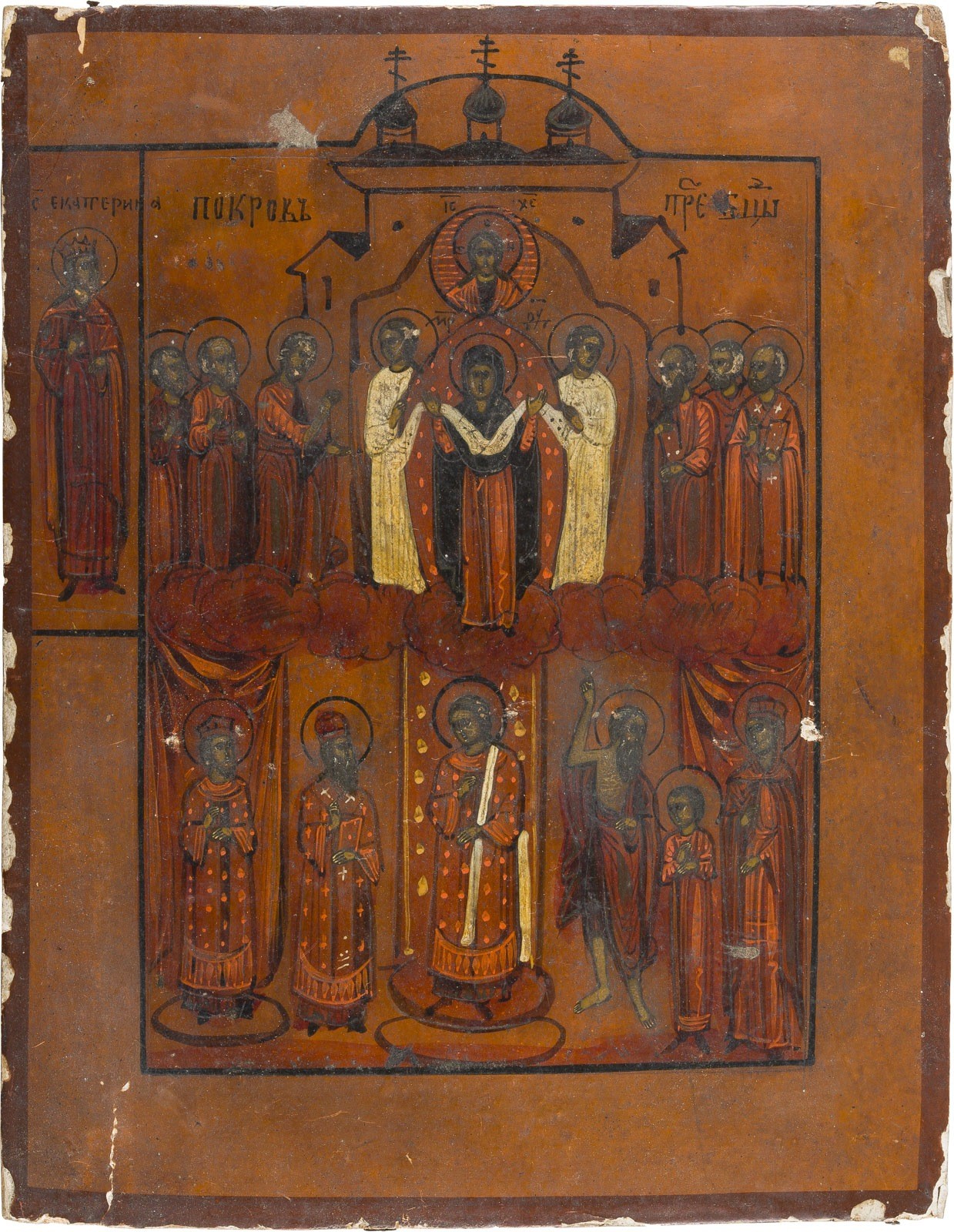 KLEINE IKONE MIT DEM SCHLEIERWUNDER DER GOTTESMUTTER (POKROW)