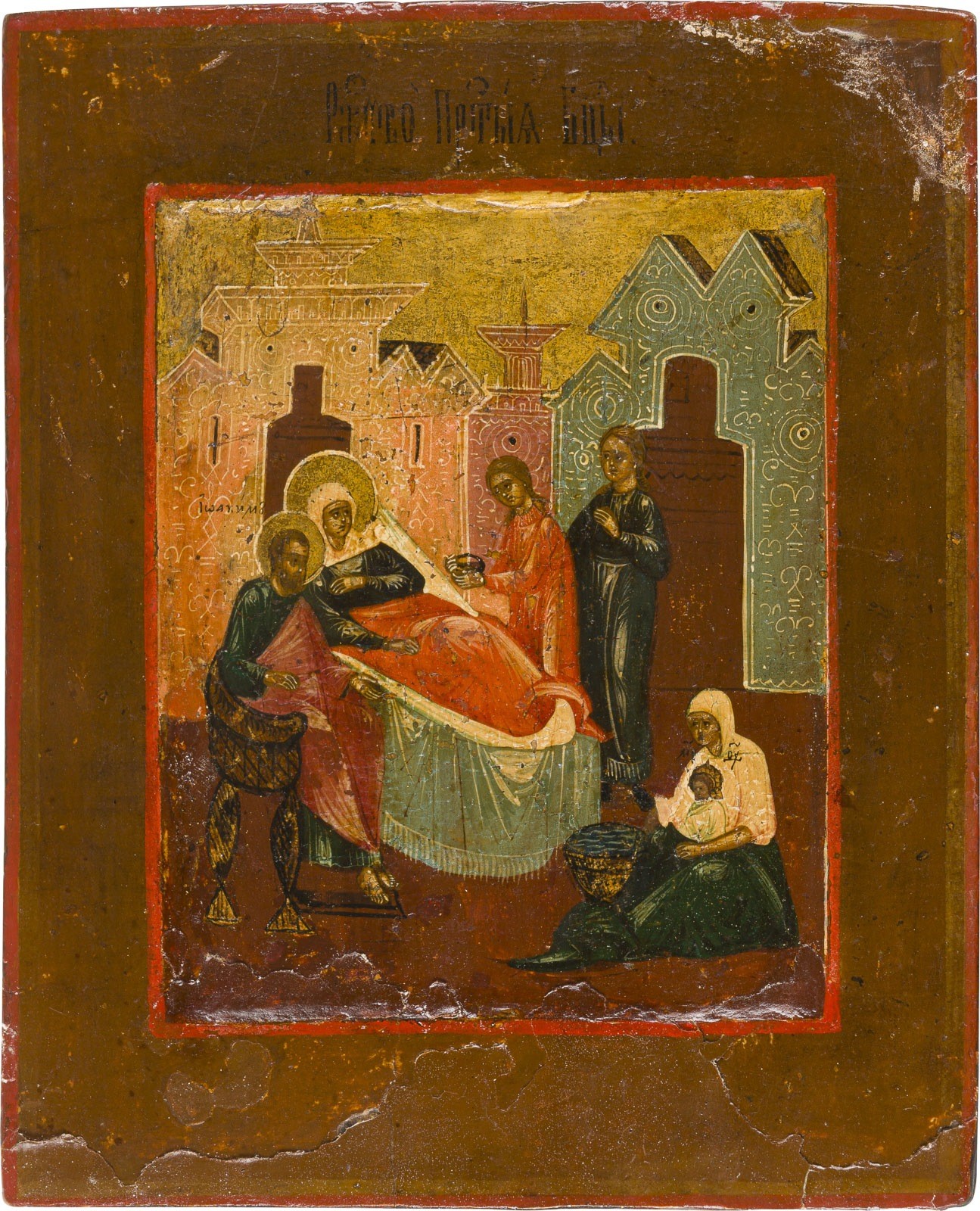 KLEINE IKONE MIT DER GEBURT DER GOTTESMUTTER